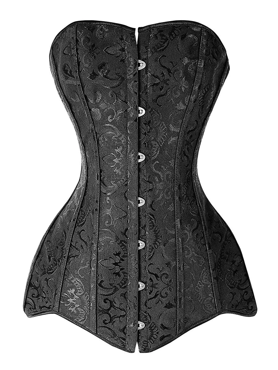 Lace Up Jacquard Hook and Eye Plus Size Corset