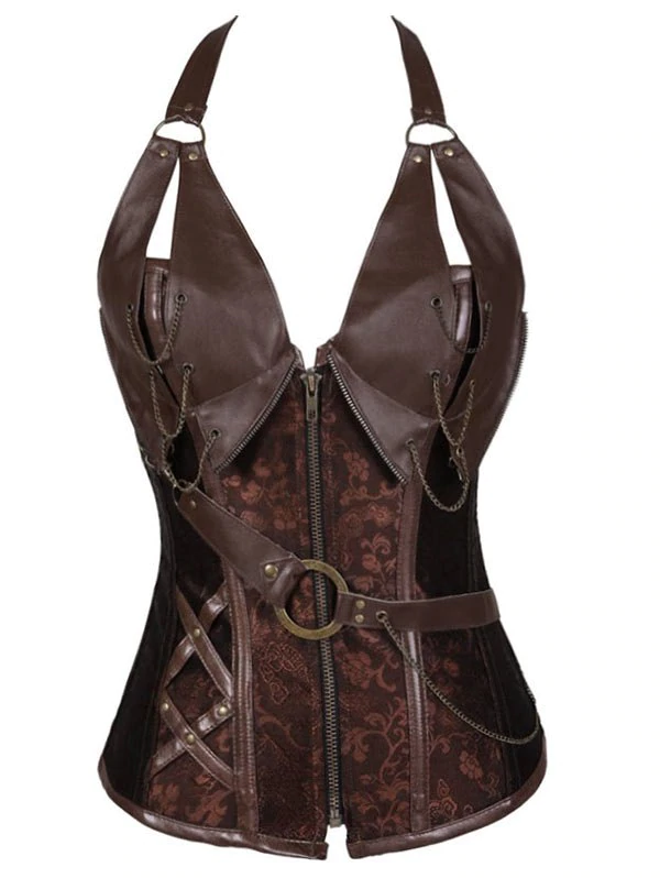 Lace Up Snap-hook Straps Chains Plus Size Corset