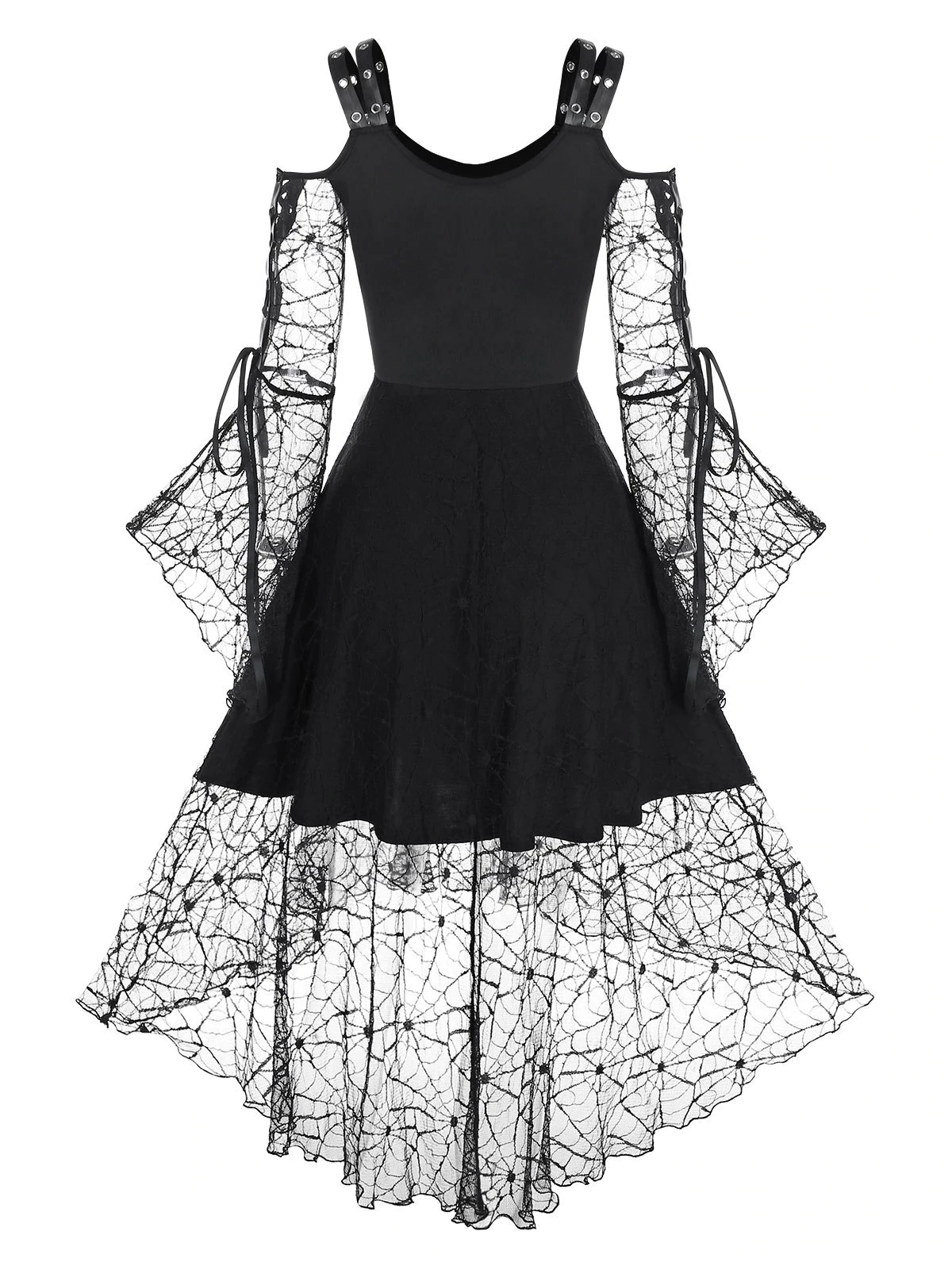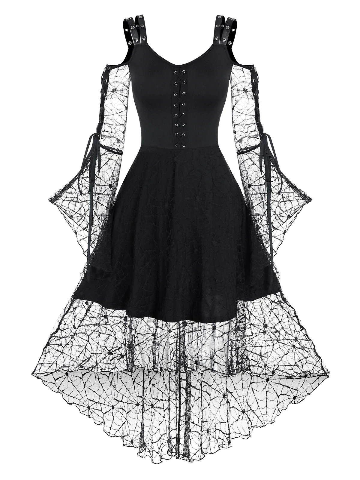 Lace-up Spider Web Lace High Low Gothic Dress
