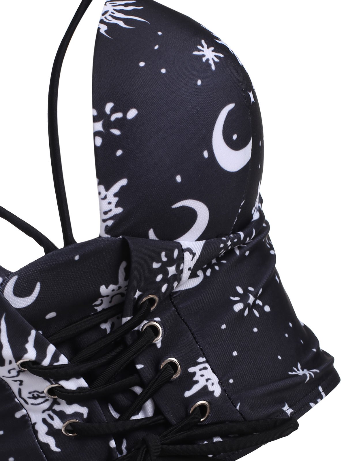 Lace Up Sun and Moon Padded Tankini Swimsuit