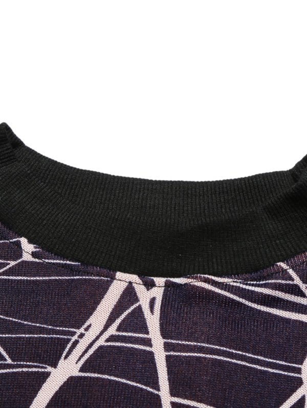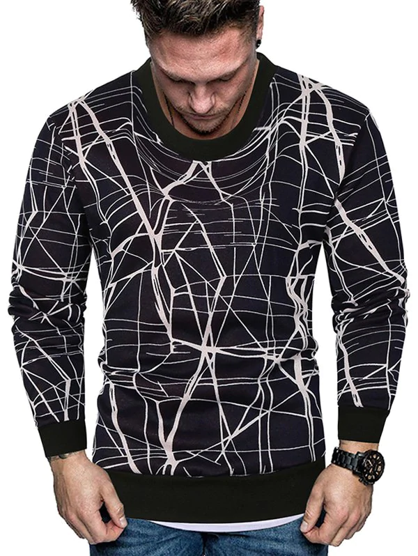 Line Print Crew Neck Fleece Sweater