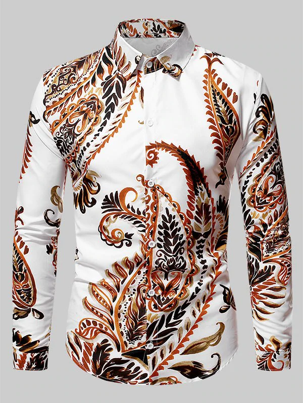 Long Sleeve Plant Leaf Print Casual Shirt
