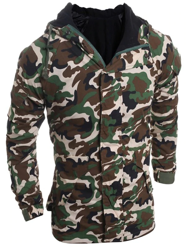 Loose Fit Hooded Fashion Multi-Pocket Camo Pattern Long Sleeve M