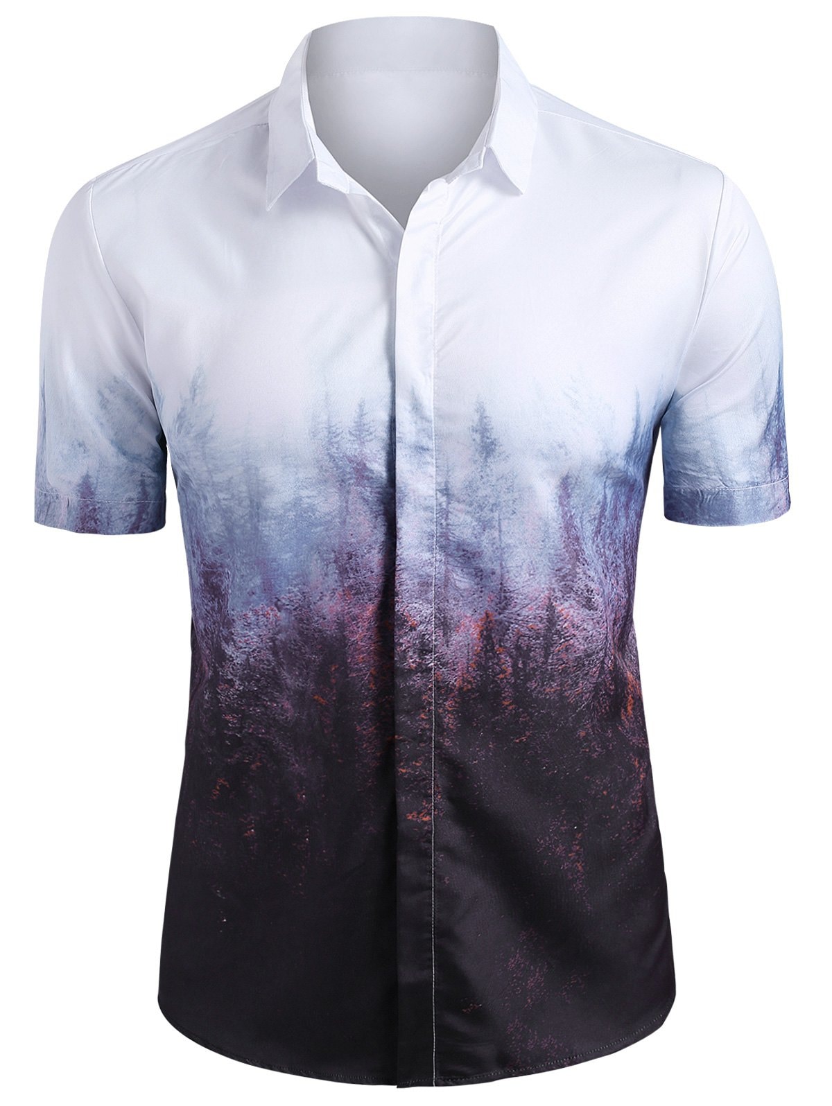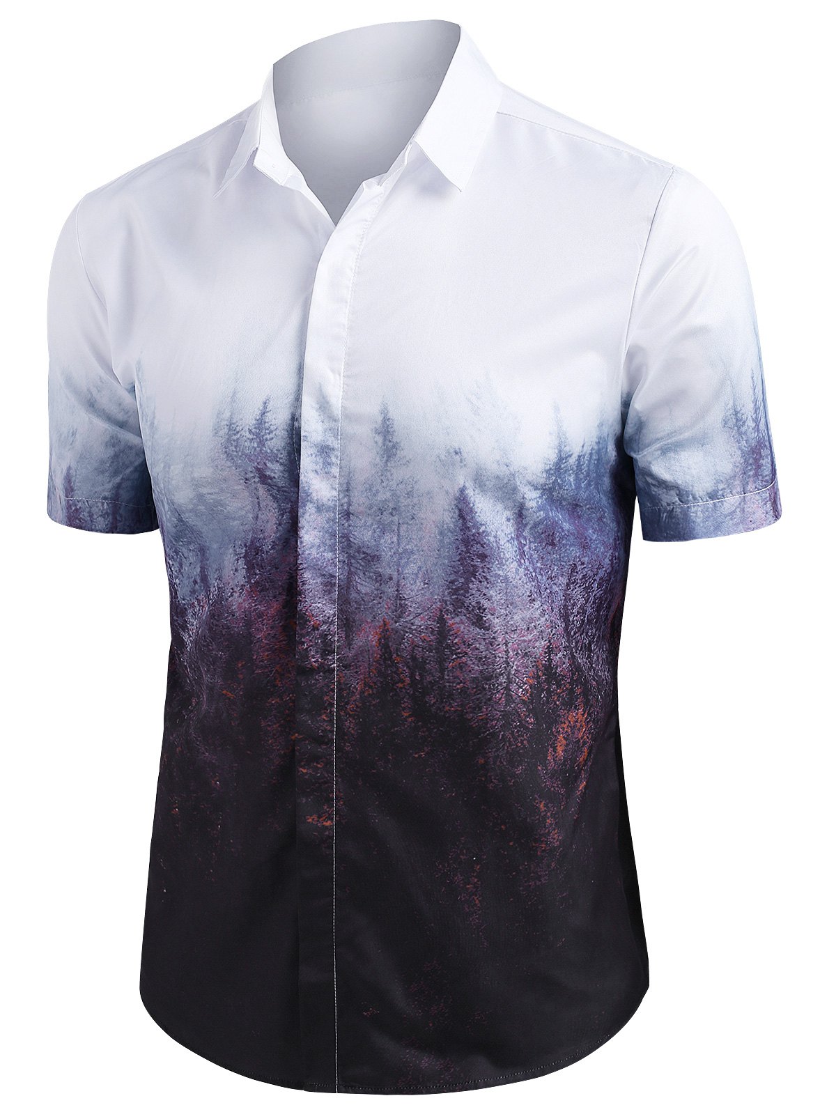 Misty Forest Print Button Up Short Sleeve Shirt