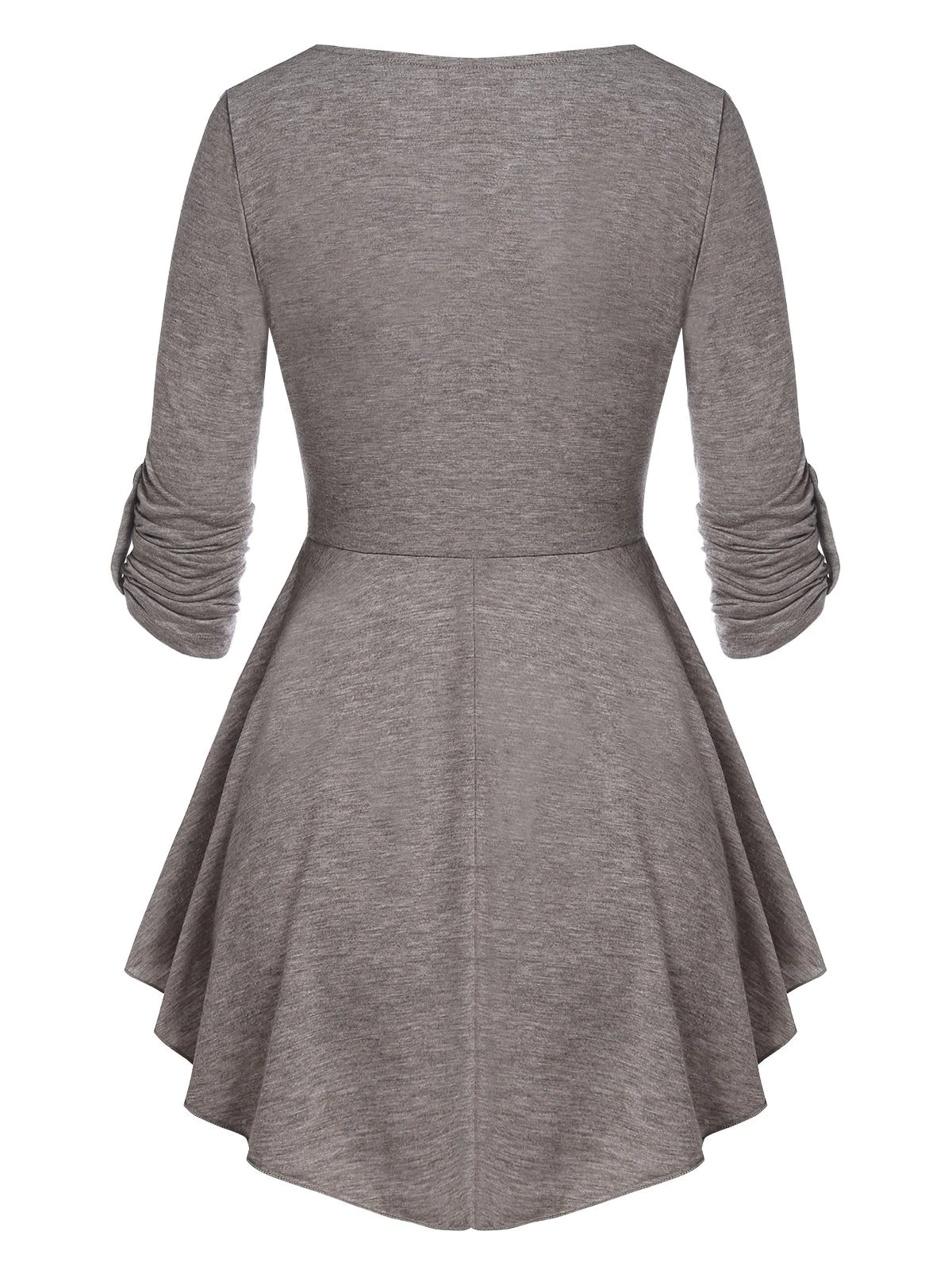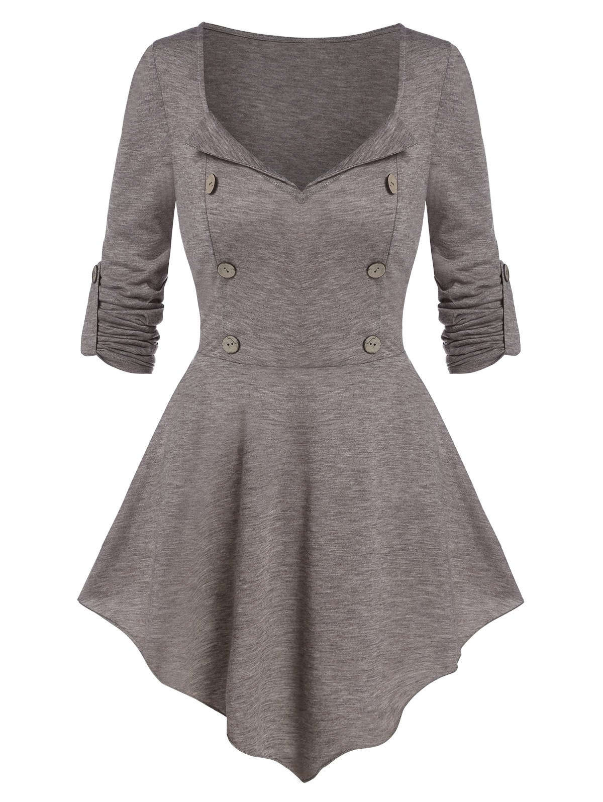 Mock Button Pointed Hem Heathered T-shirt