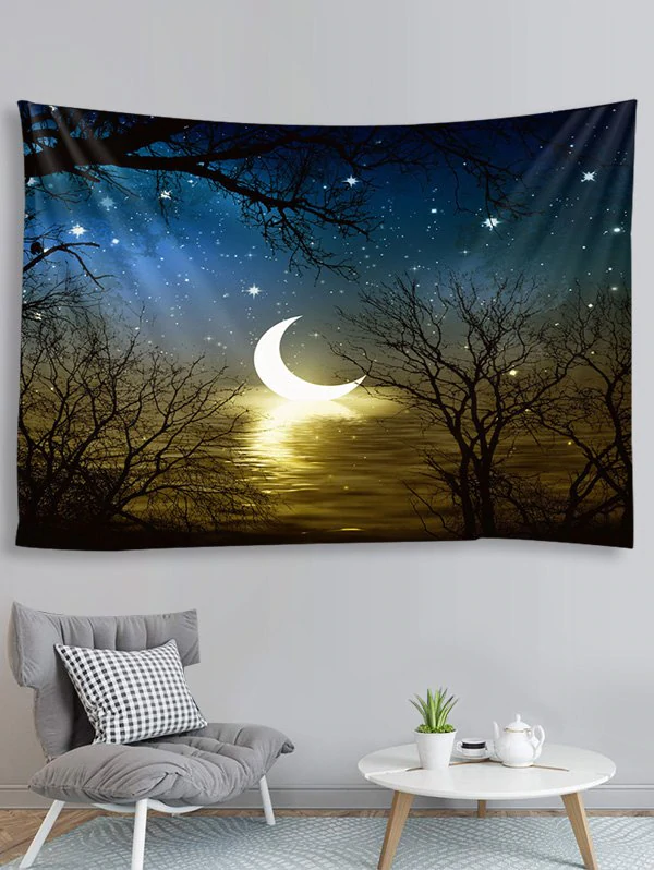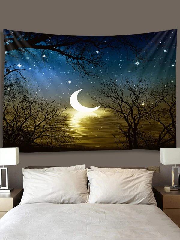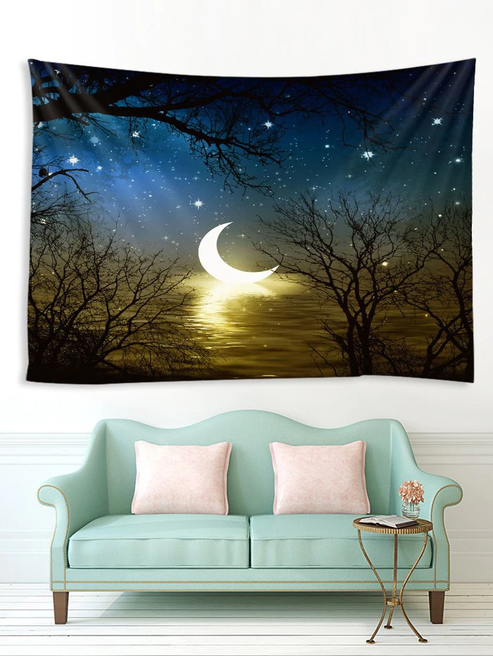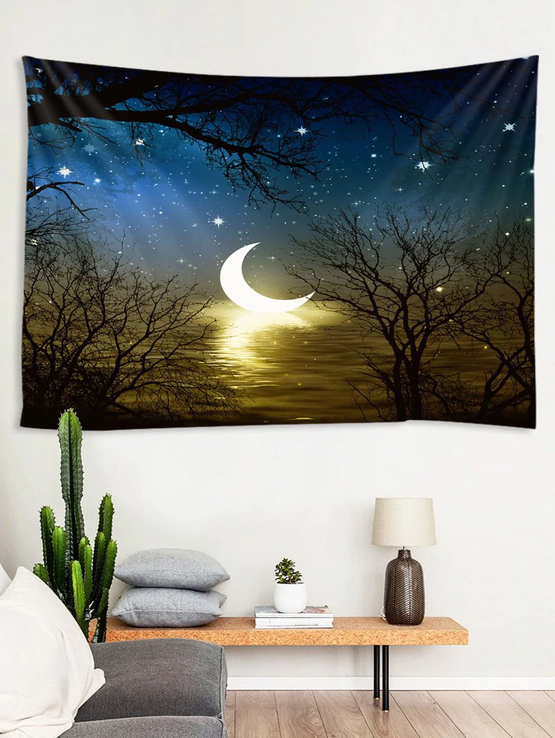 Moon Night Lake Print Tapestry Wall Hanging Art Decor