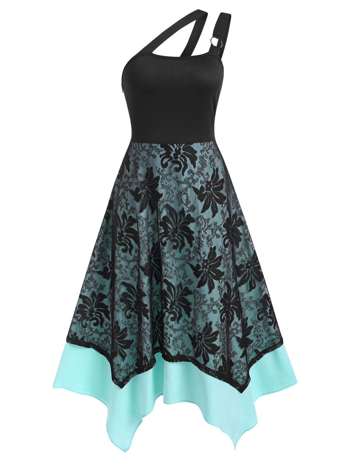 O-ring Asymmetrical Layered Lace Cami Dress
