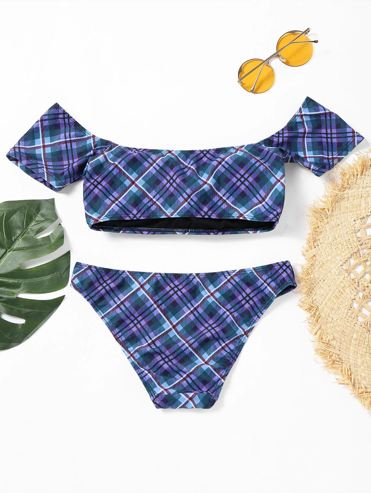 Off Shoulder Plaid Bikini Swimwear