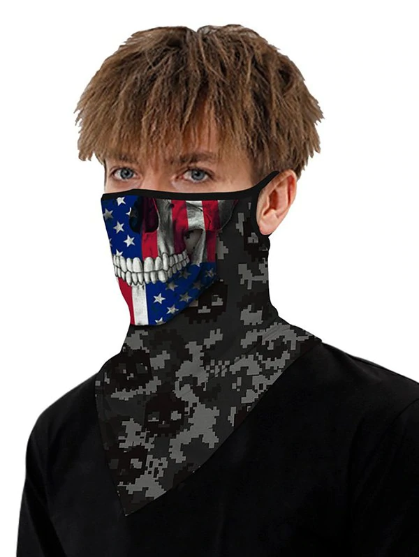 Outdoor Skull Flag Camo Print Mask Scarf