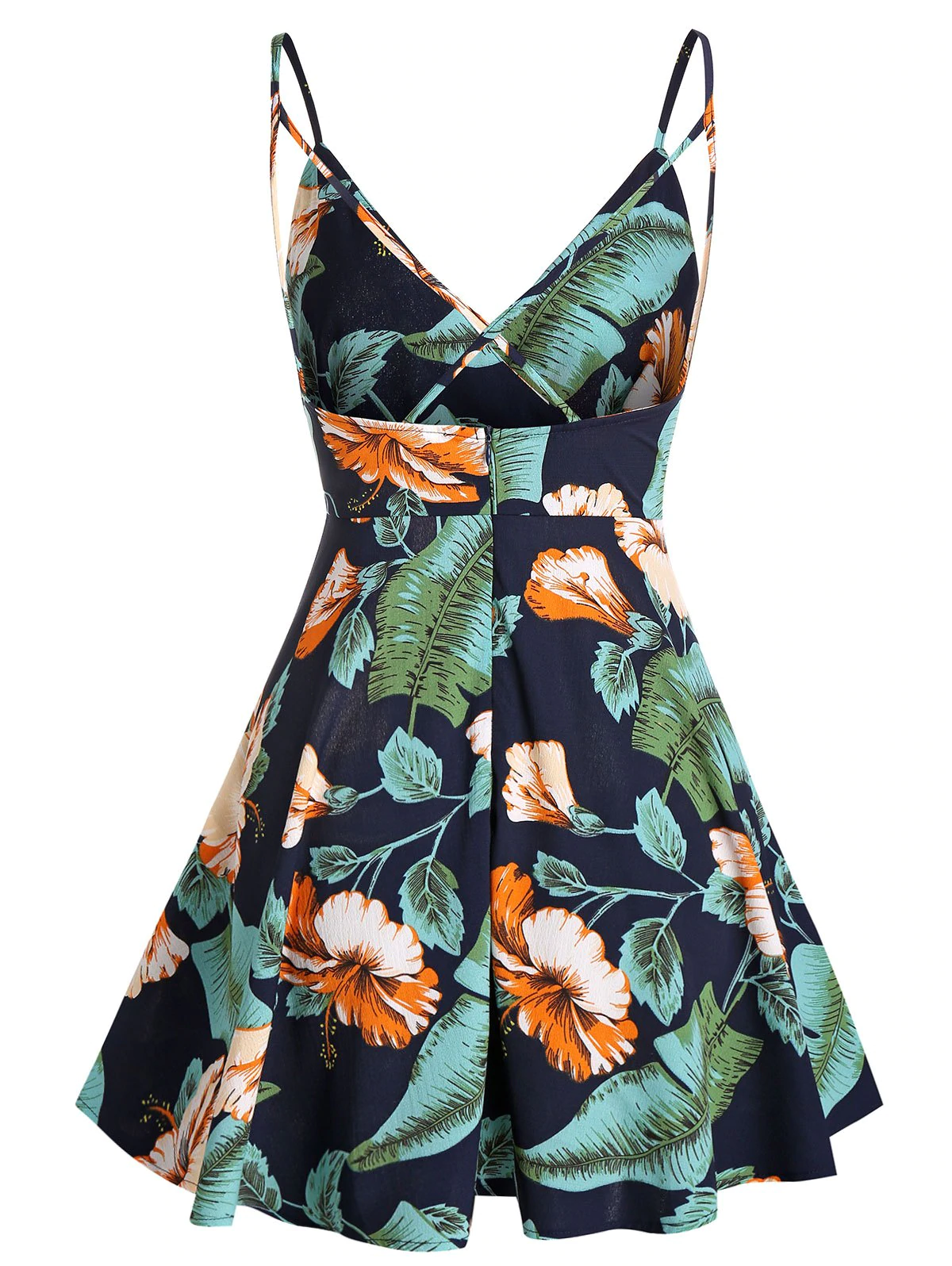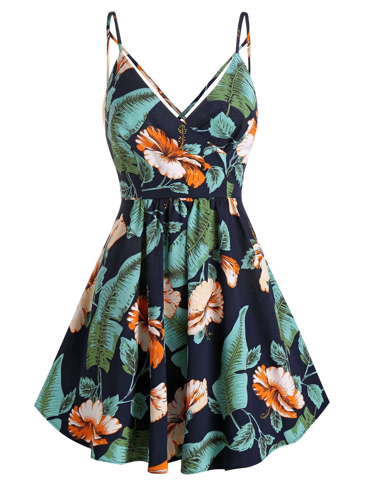 Palm Floral Print Wrap Spaghetti Strap Dress