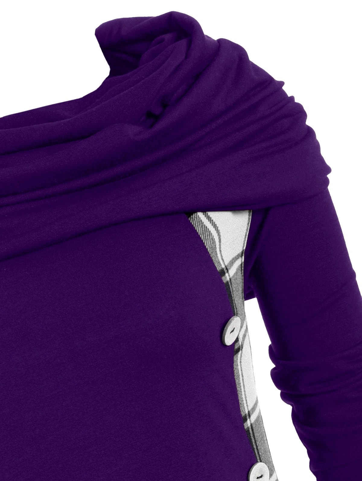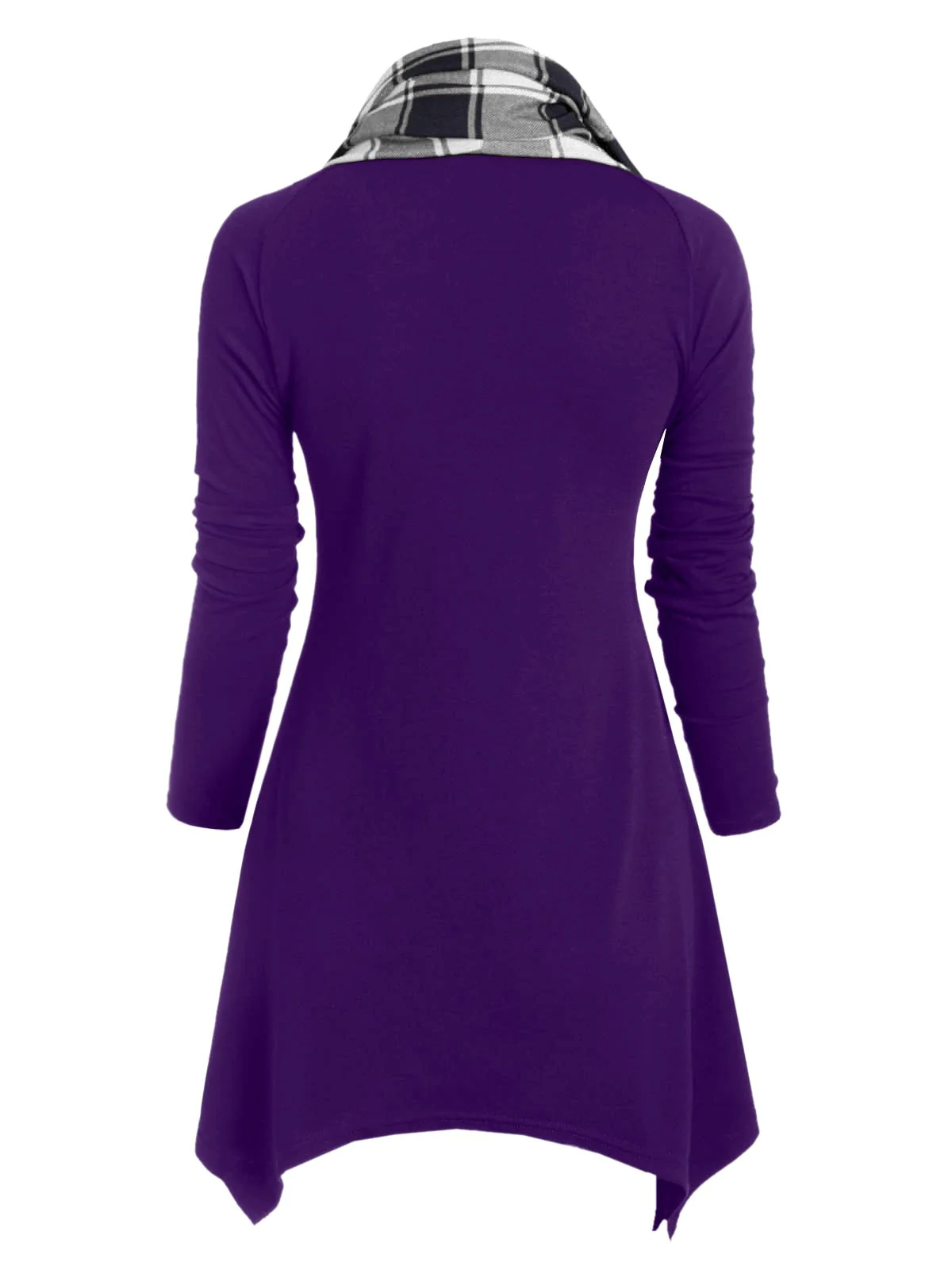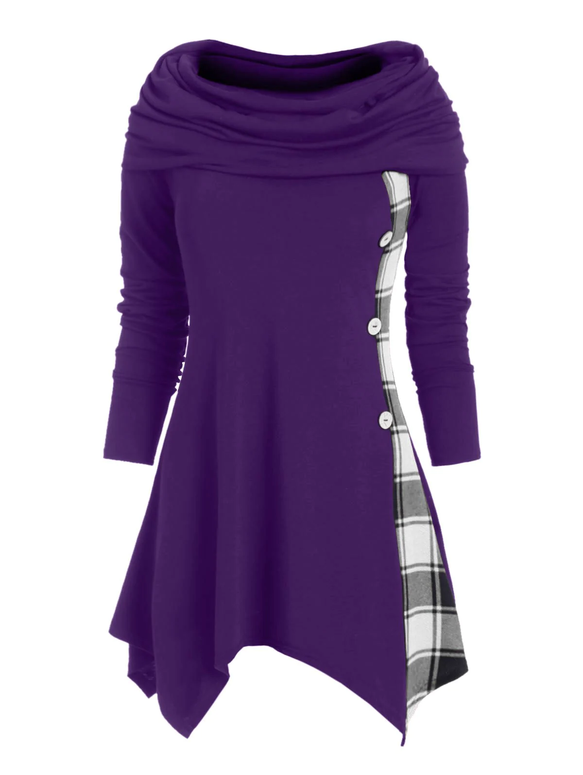 Plaid Convertible Neck Mock Button Handkerchief T-shirt