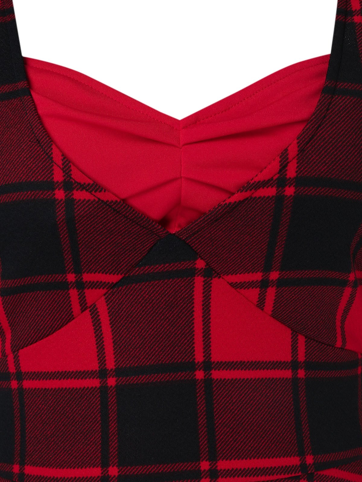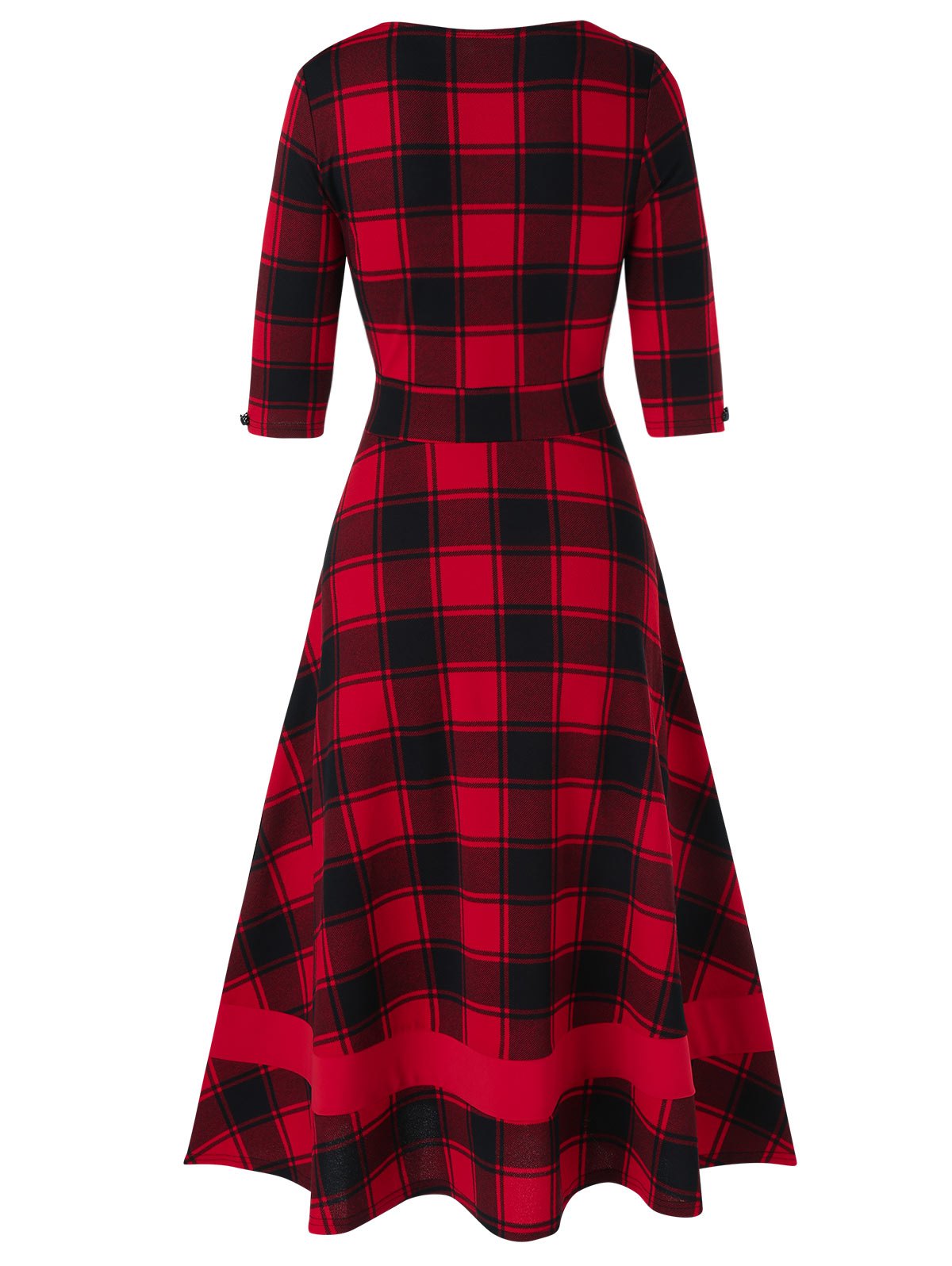 Plaid Print Sweetheart Neck Midi Vintage Flare Dress