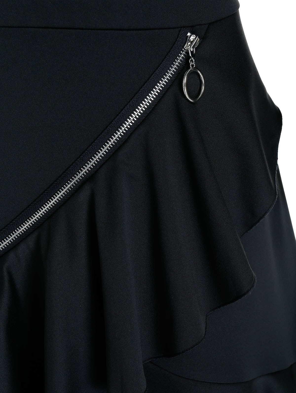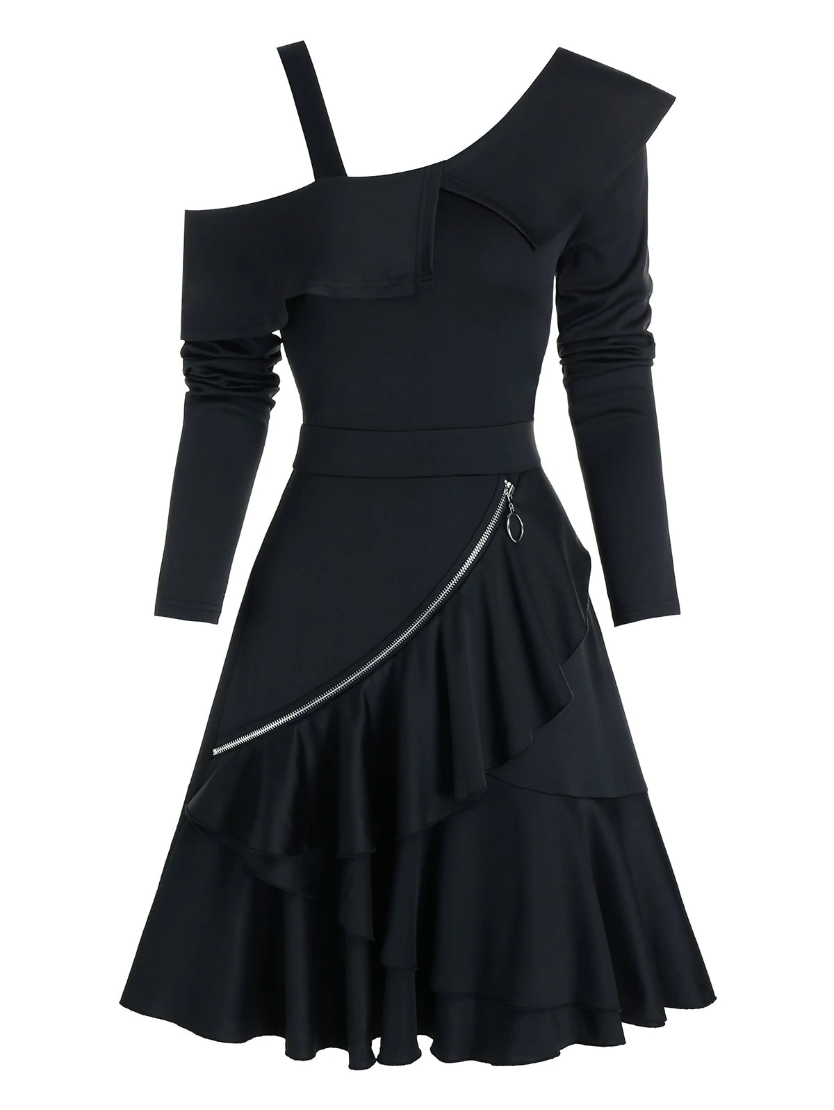 Plain Open Shoulder O-ring Zip Layered Mini Dress