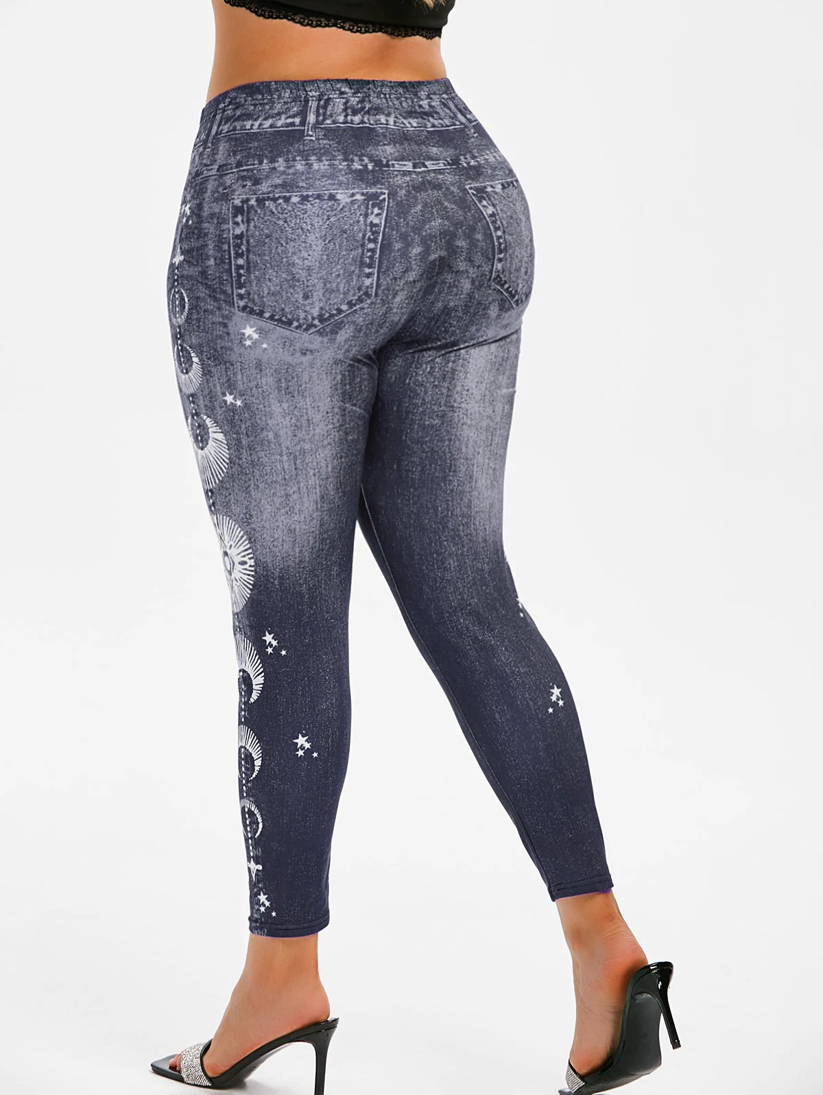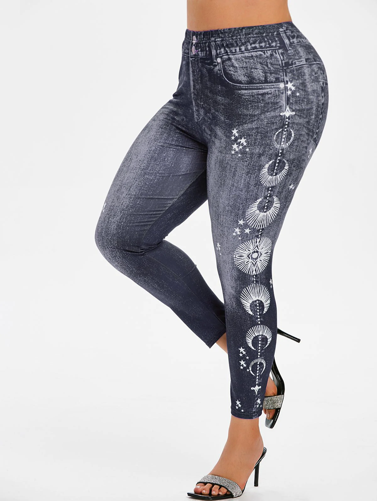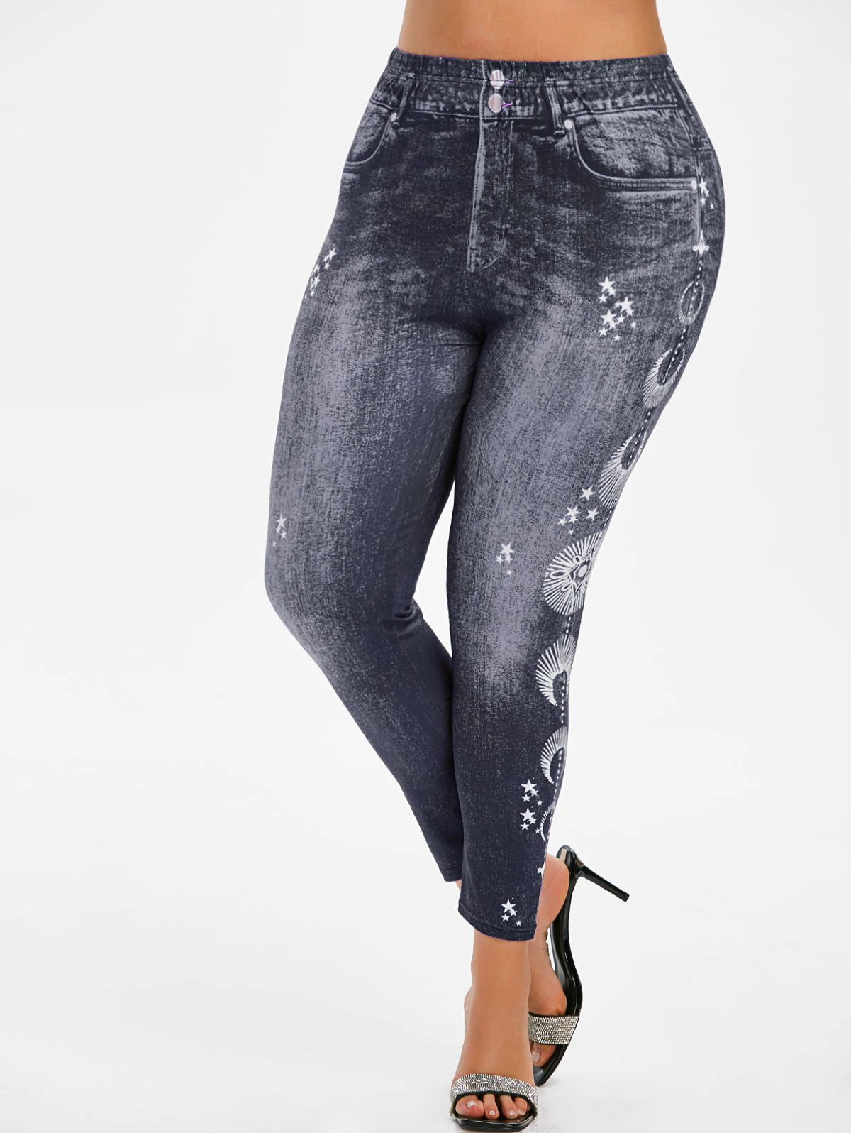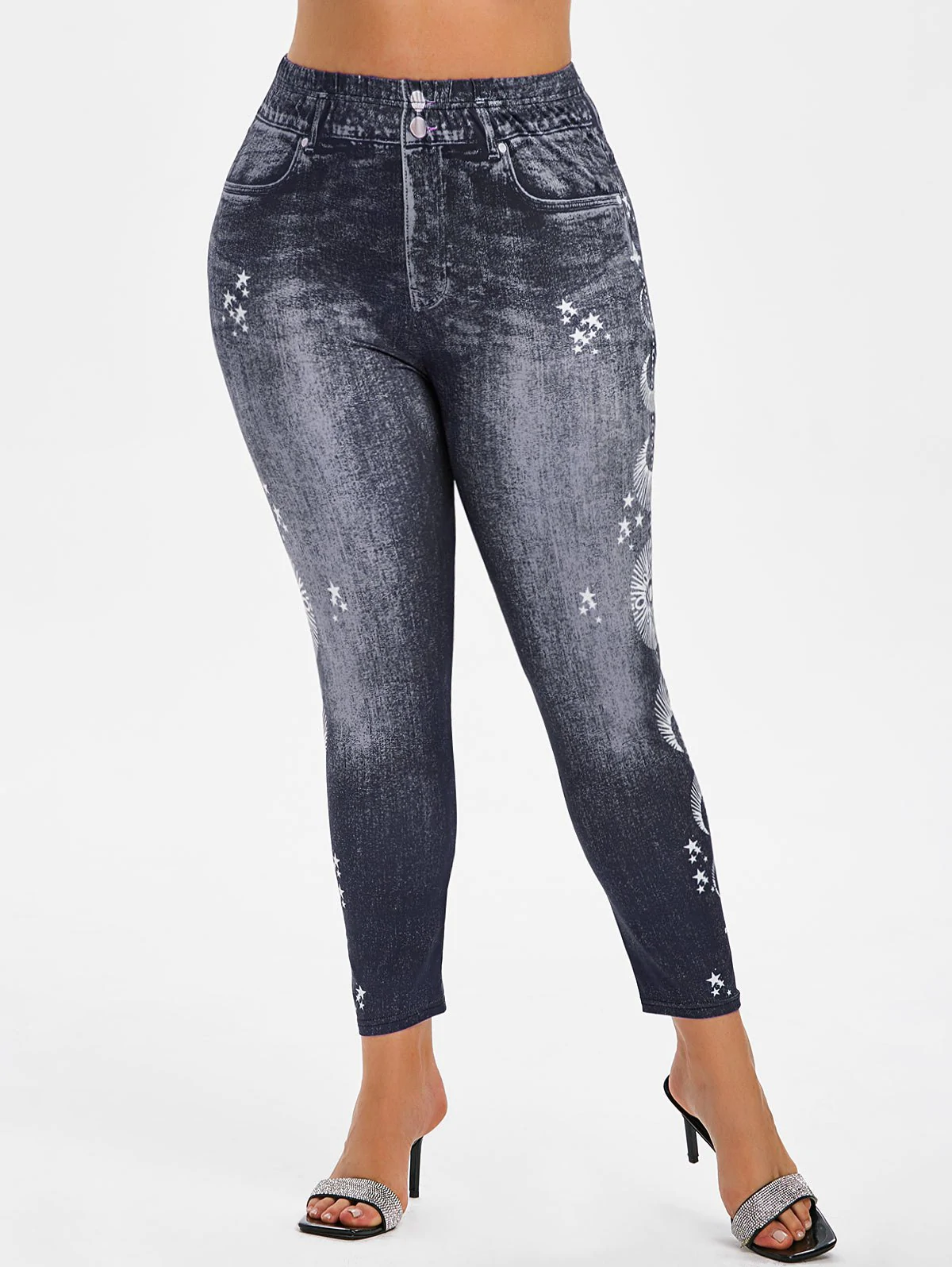 Plus Size 3D Print Star High Rise Jeggings