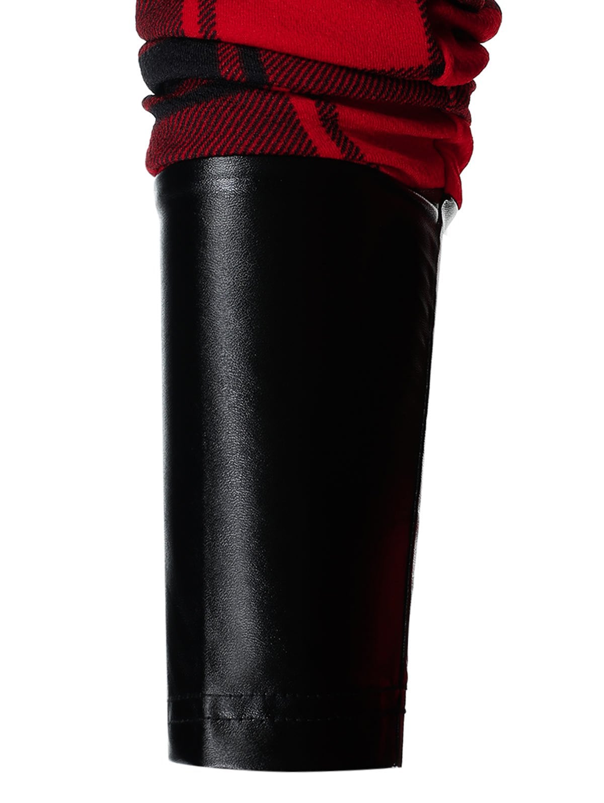 Plus Size Asymmetric Zip Plaid PU Leather Panel Tunic Coat