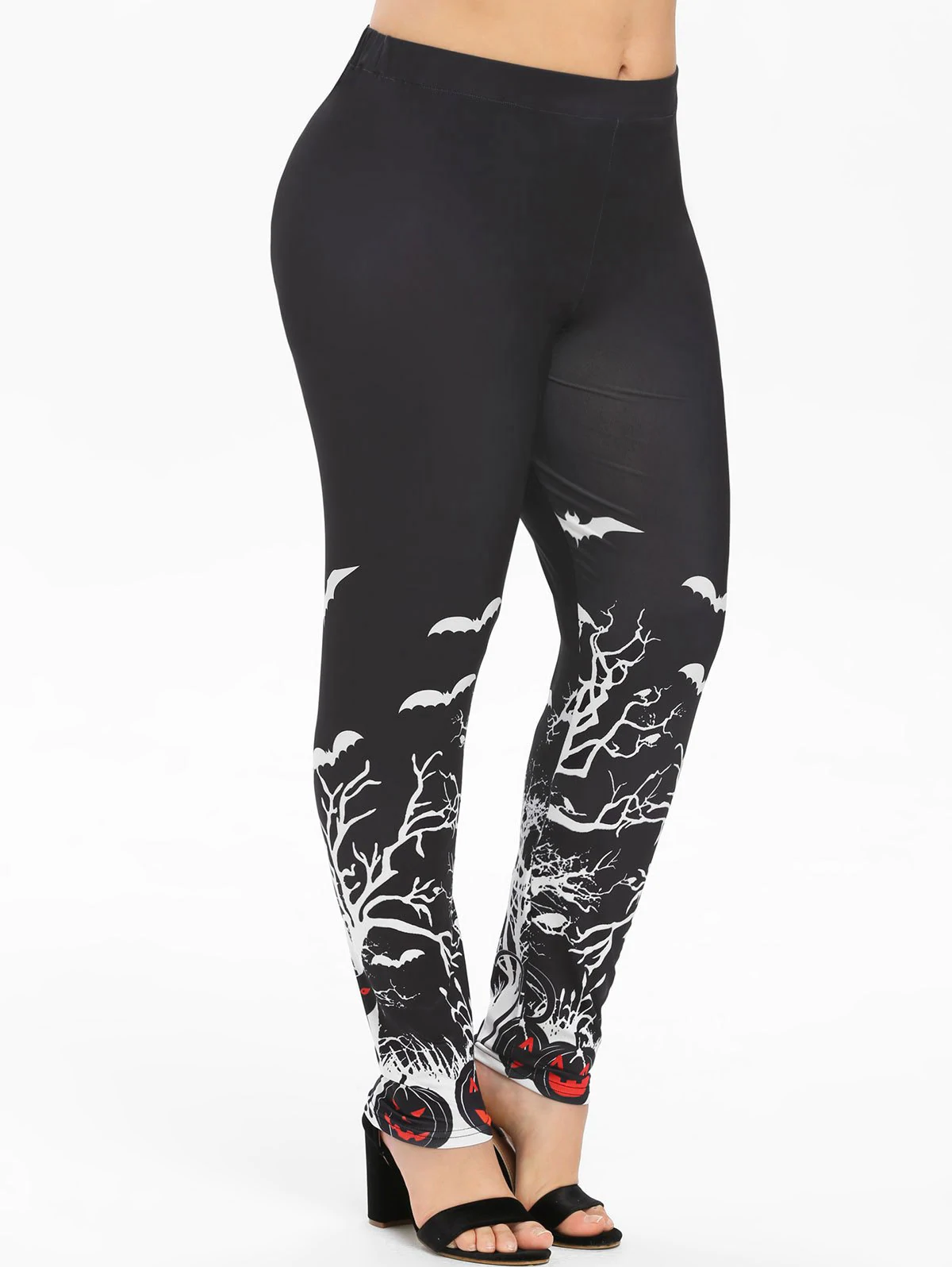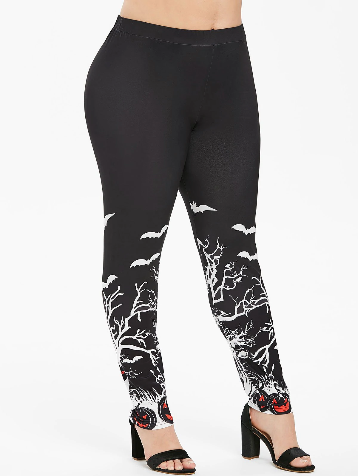 2 reviews for Plus Size Bat Tree Pumpkin Print Halloween Leggings
