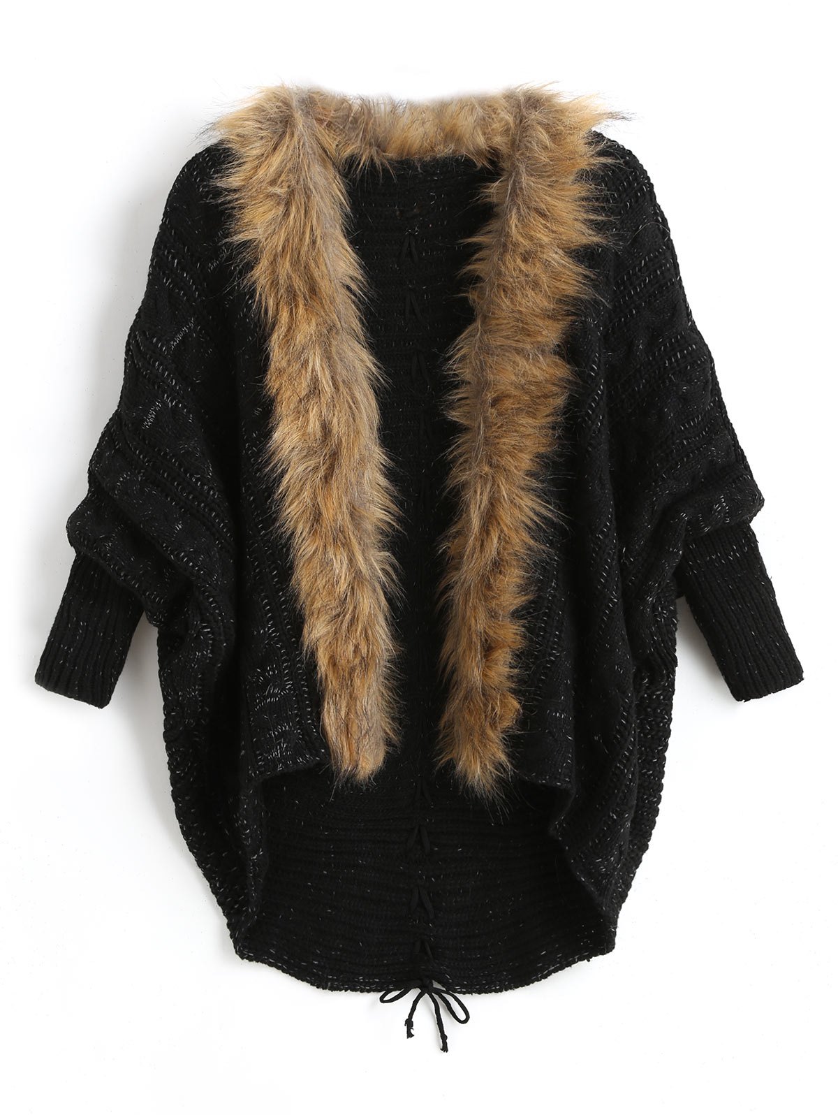1 review for Plus Size Batwing Sleeve Faux Fur Lace Up Chunky Cardigan