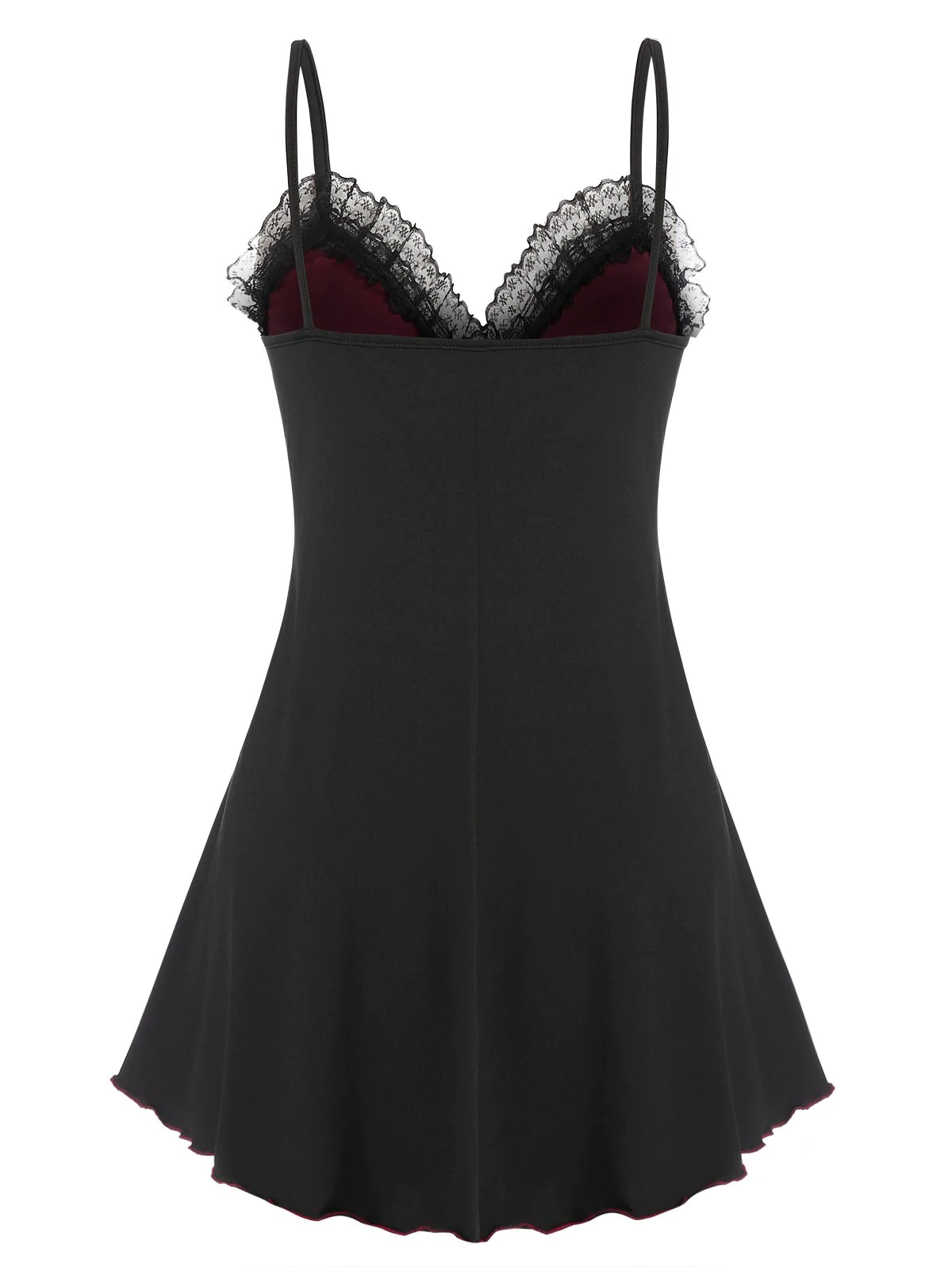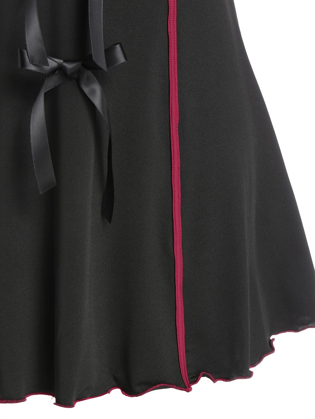 Plus Size Bicolor Bowknot Lace Trim Lingerie Dress