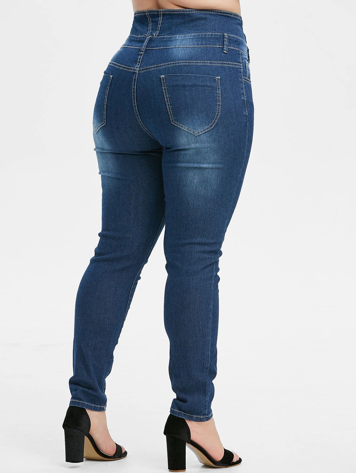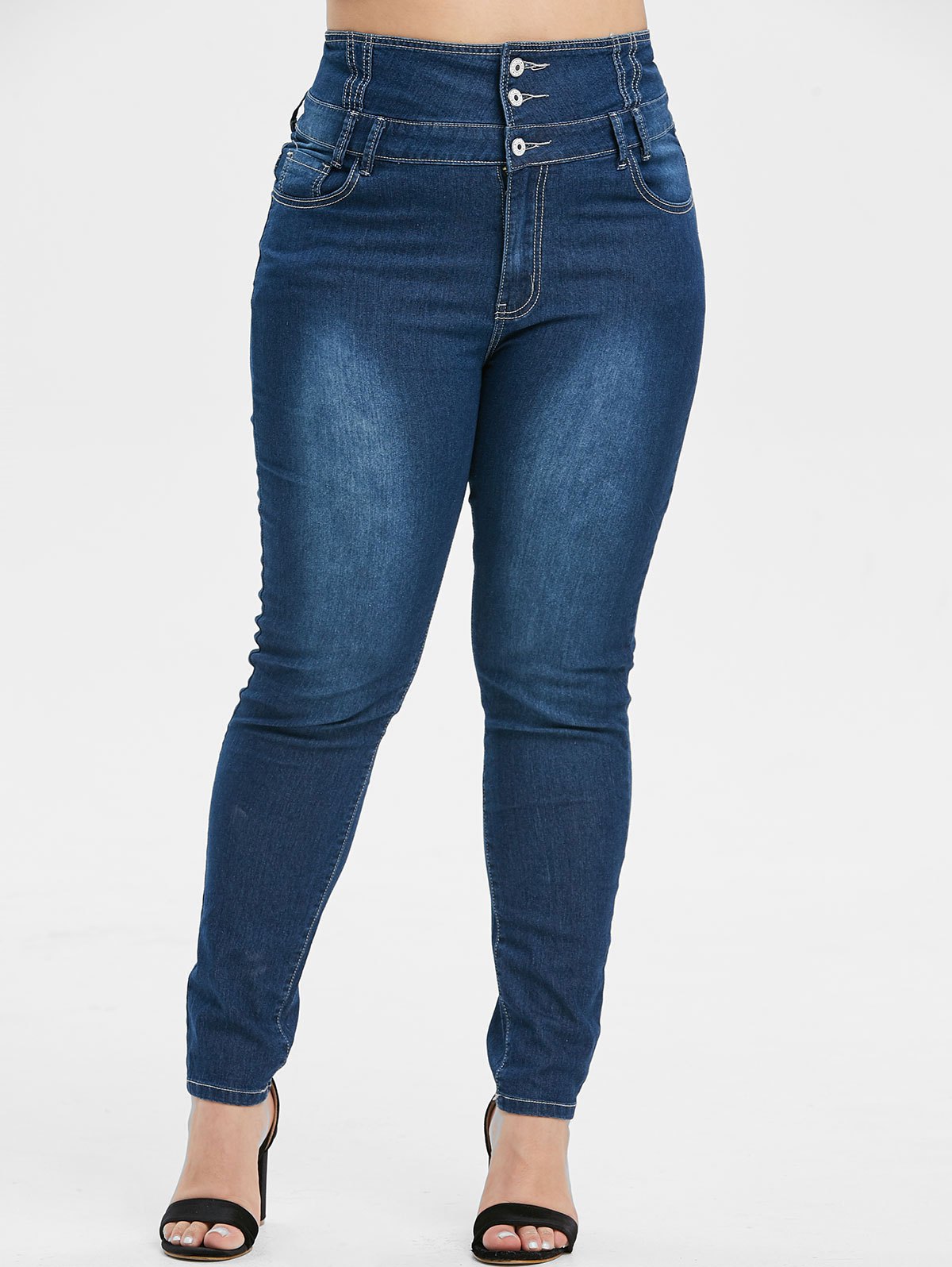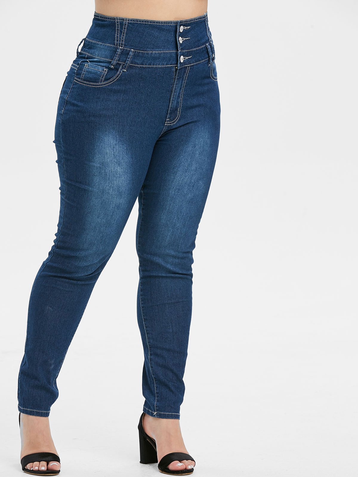 Plus Size Button Fly Faded Skinny Jeans