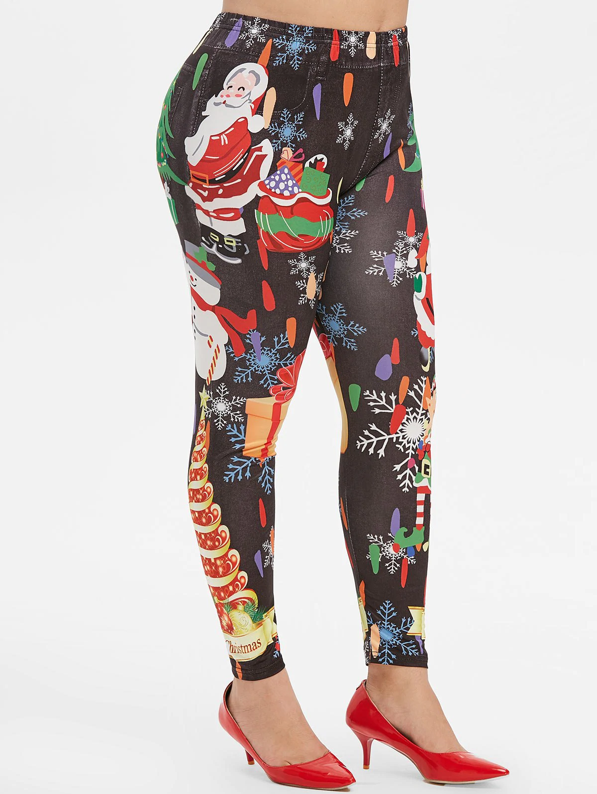 Plus Size Christmas Snowflake Santa Claus and Tree Print Legging