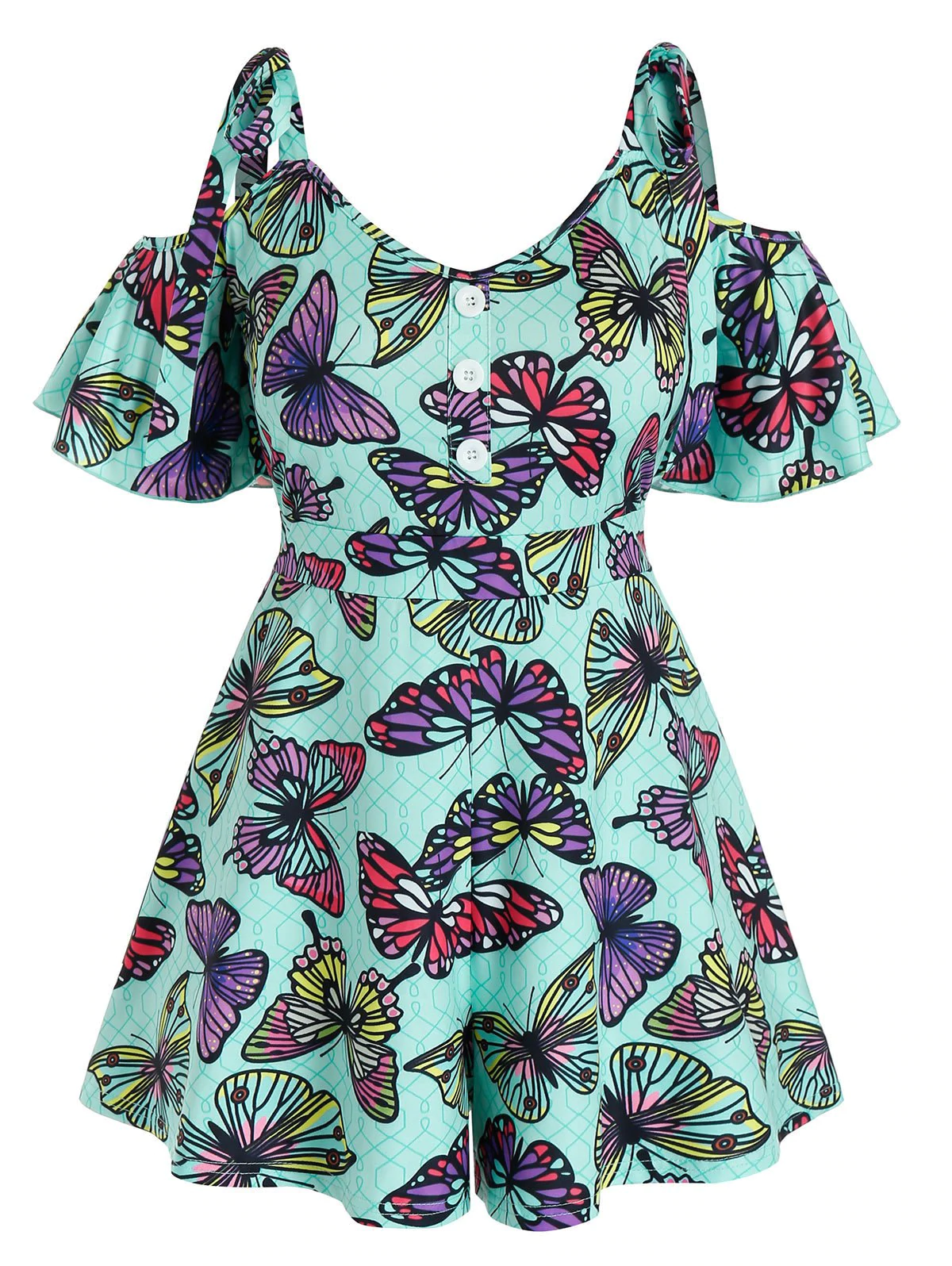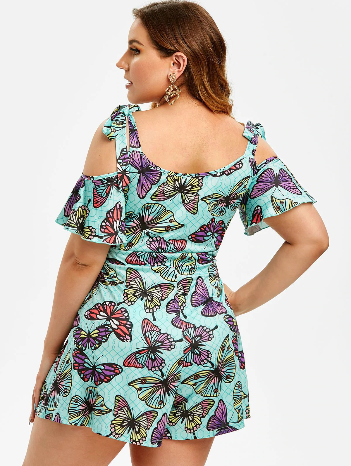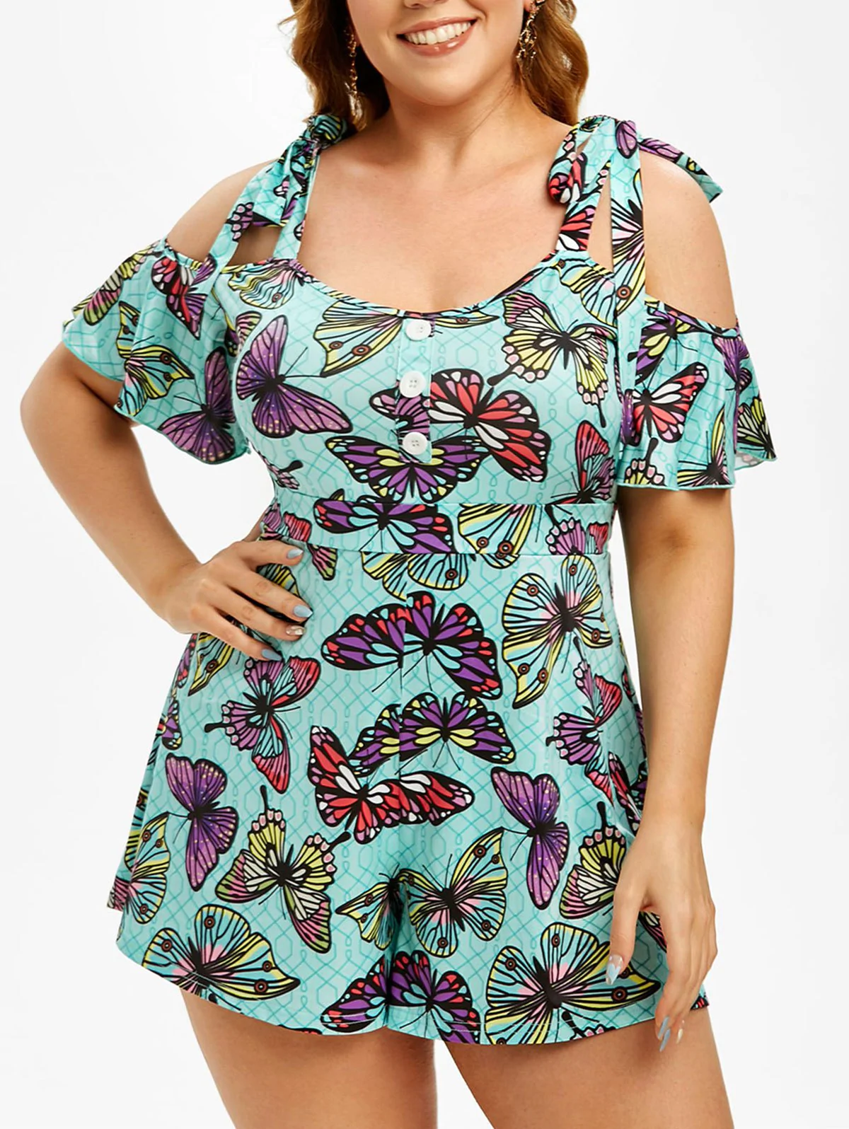 1 review for Plus Size Cold Shoulder Butterfly Print Romper