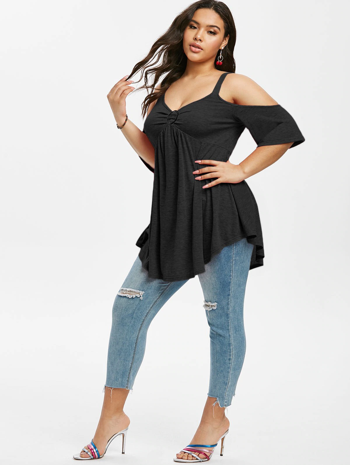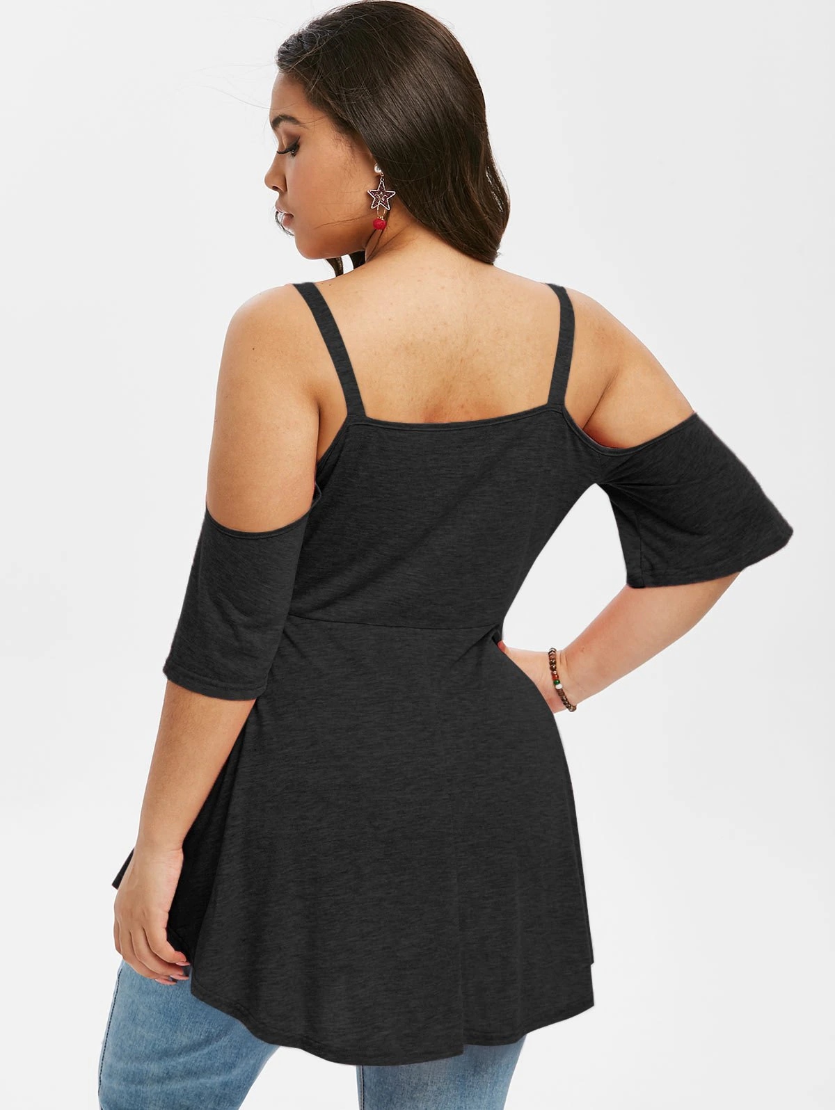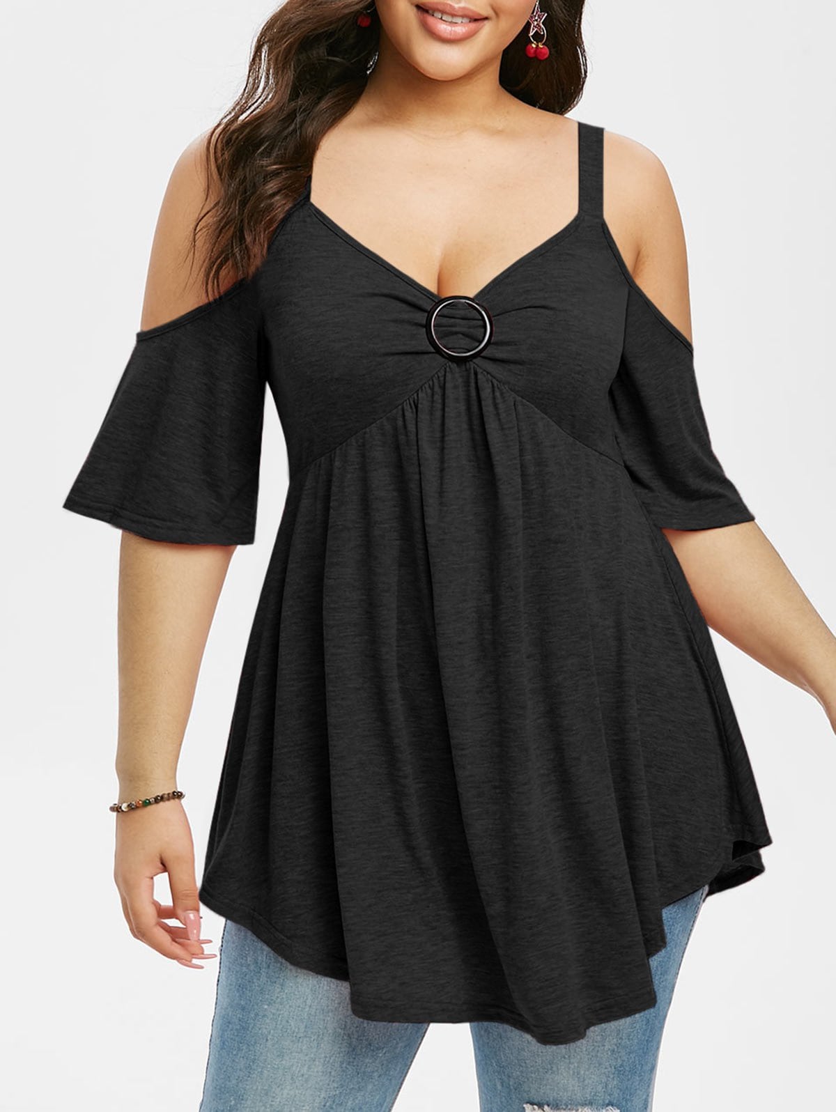 Plus Size Cold Shoulder Knot Half Sleeve Tee