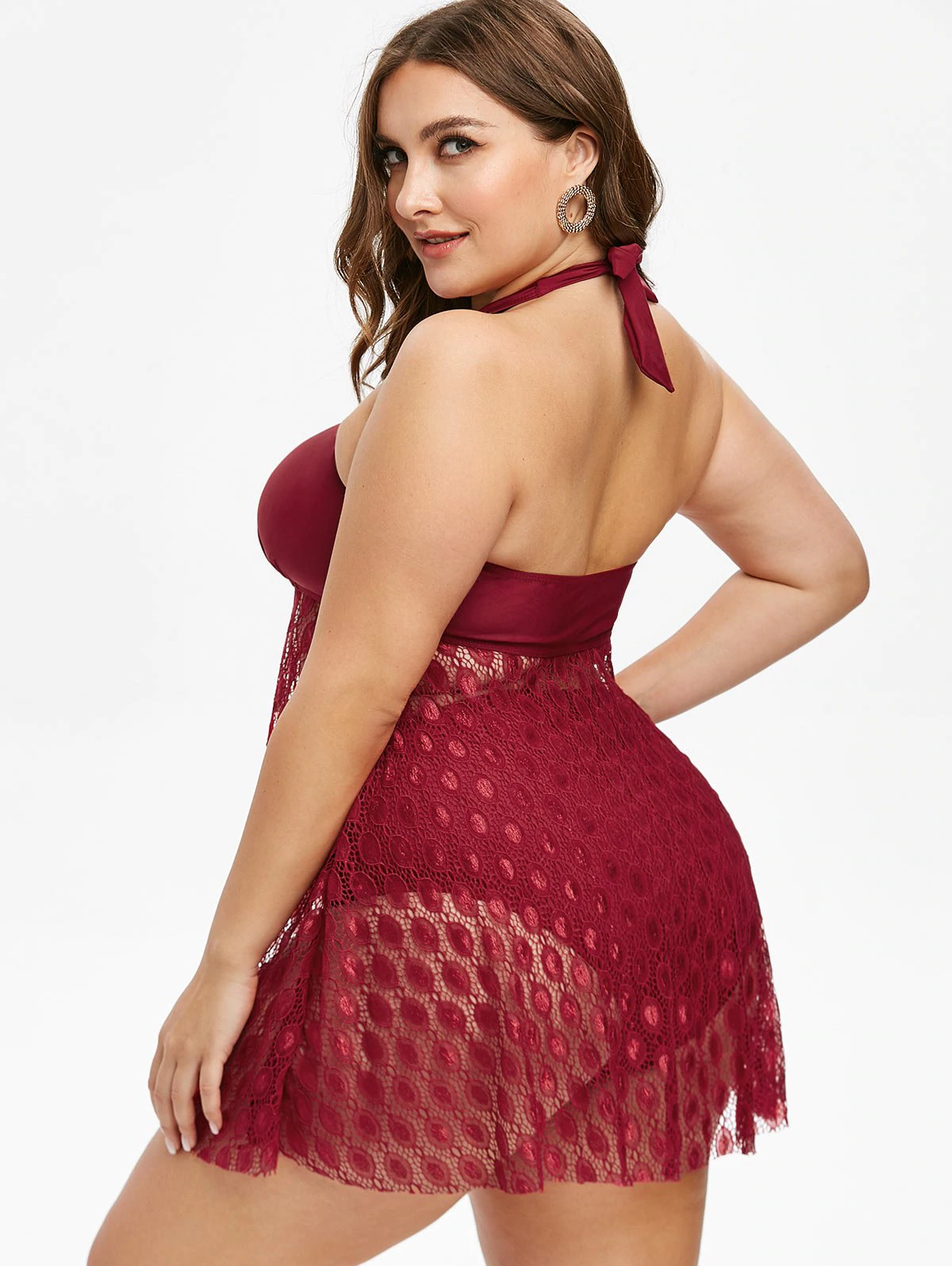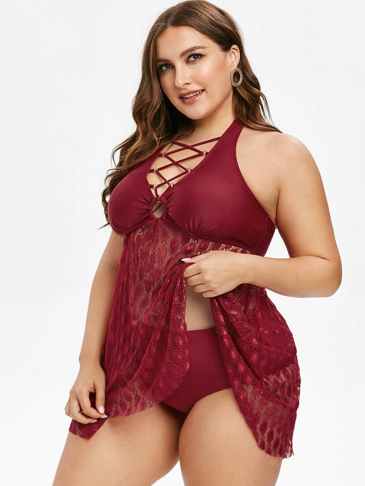 3 reviews for Plus Size Crisscross Lace Overlay Tankini Swimwear