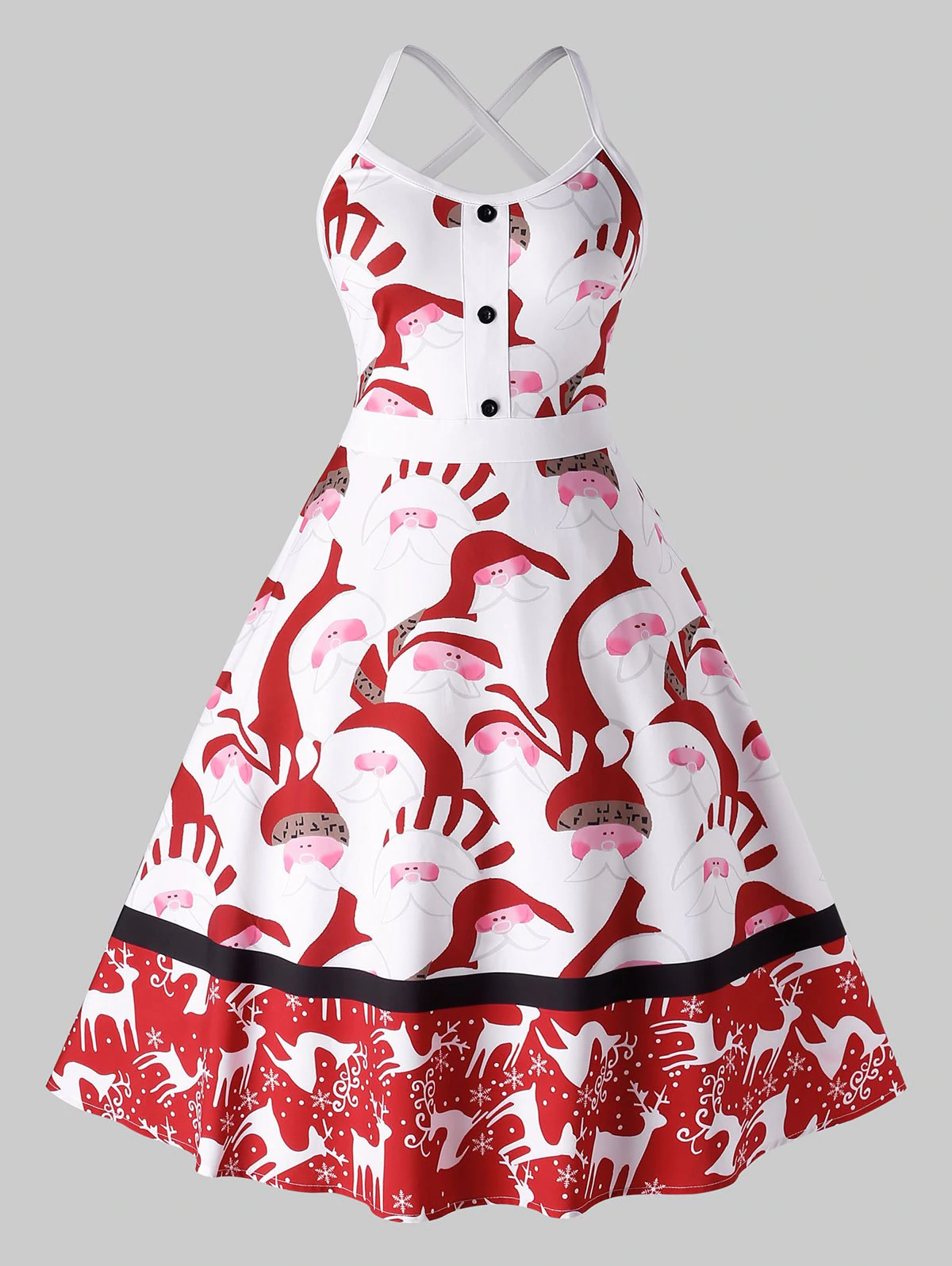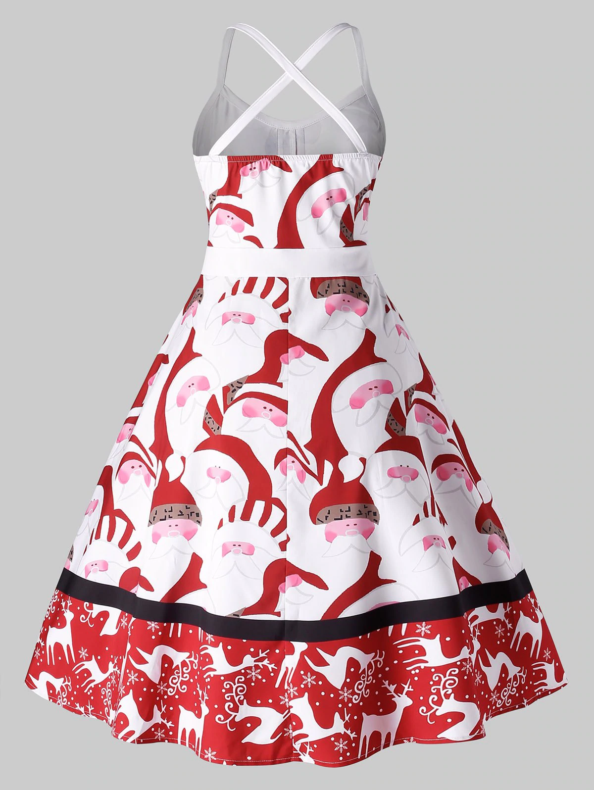 Plus Size Crisscross Santa Claus Print Christmas Dress