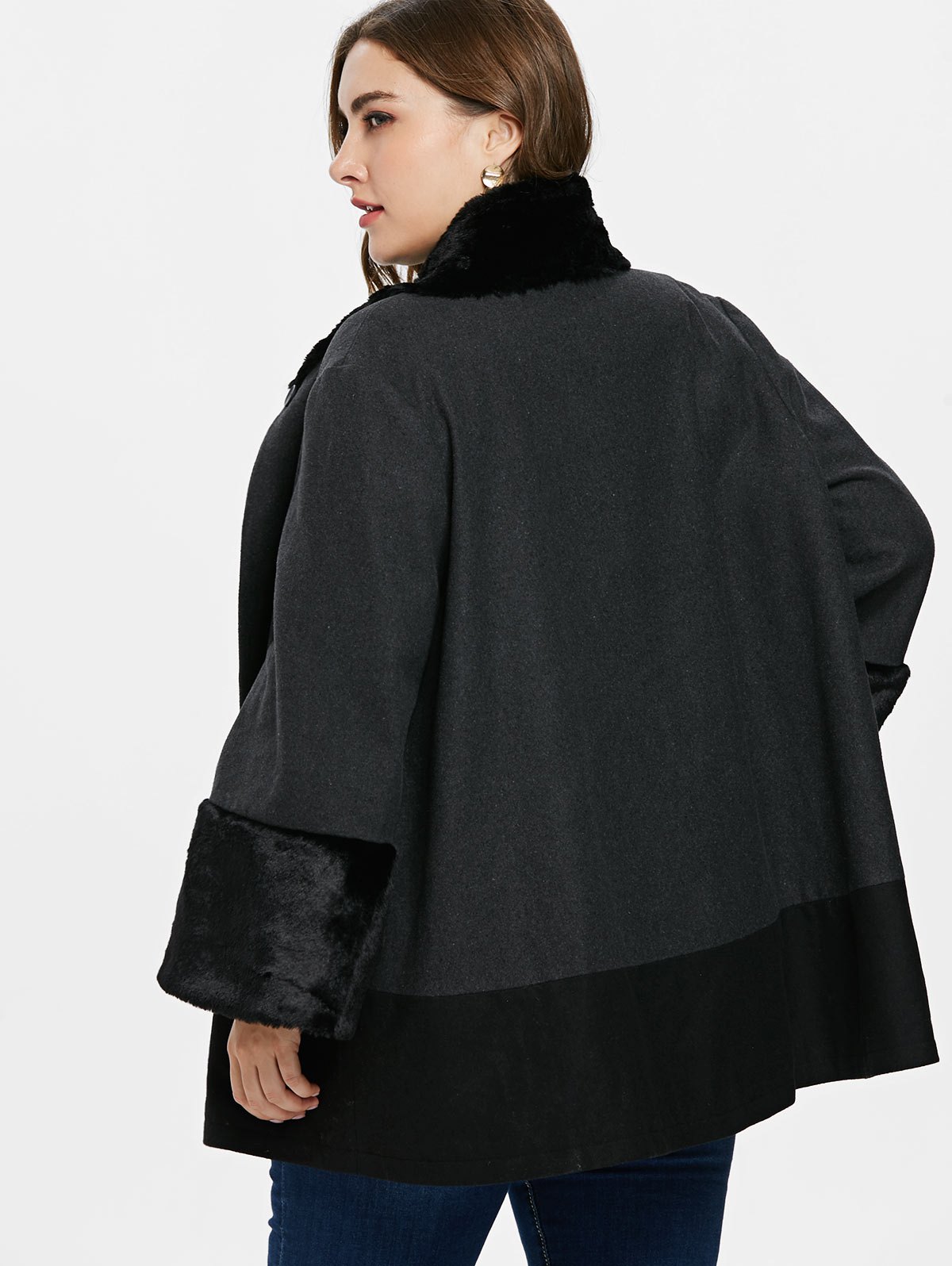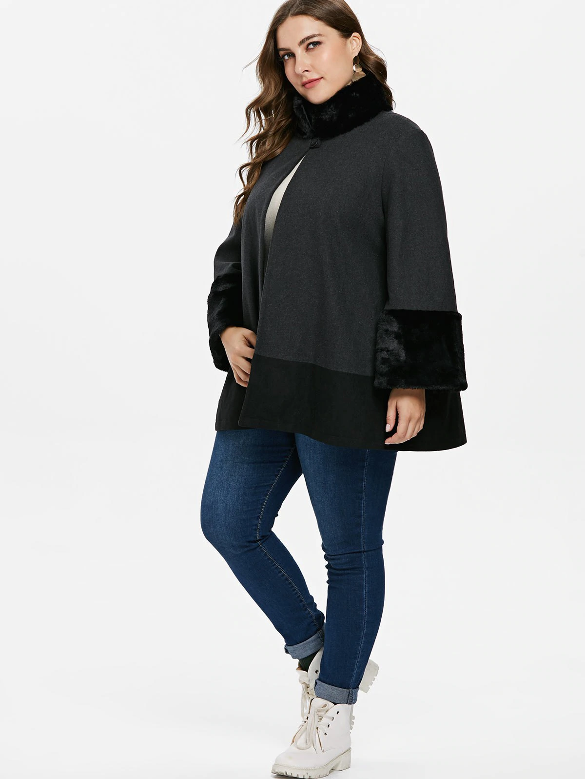 Plus Size Faux Fur Trim One Button Coat