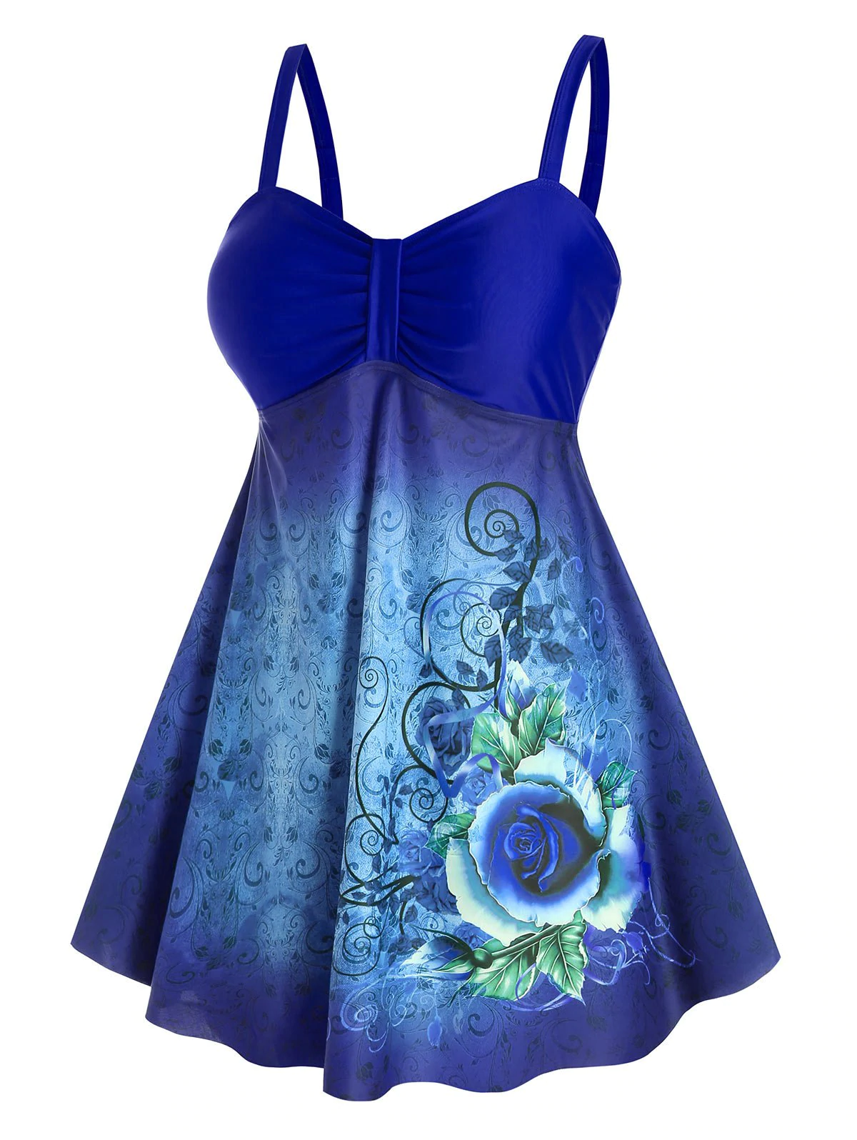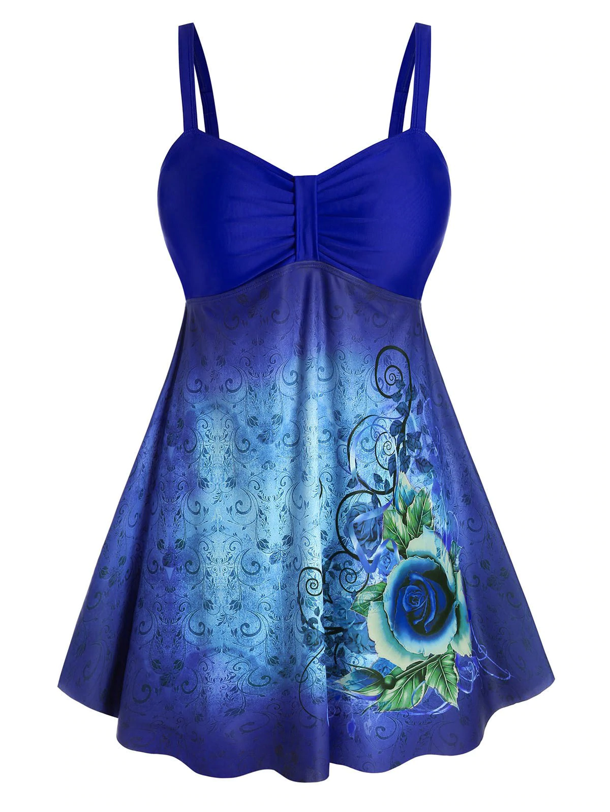 Plus Size Floral Tribal Print Empire Waist Tankini Swimwear