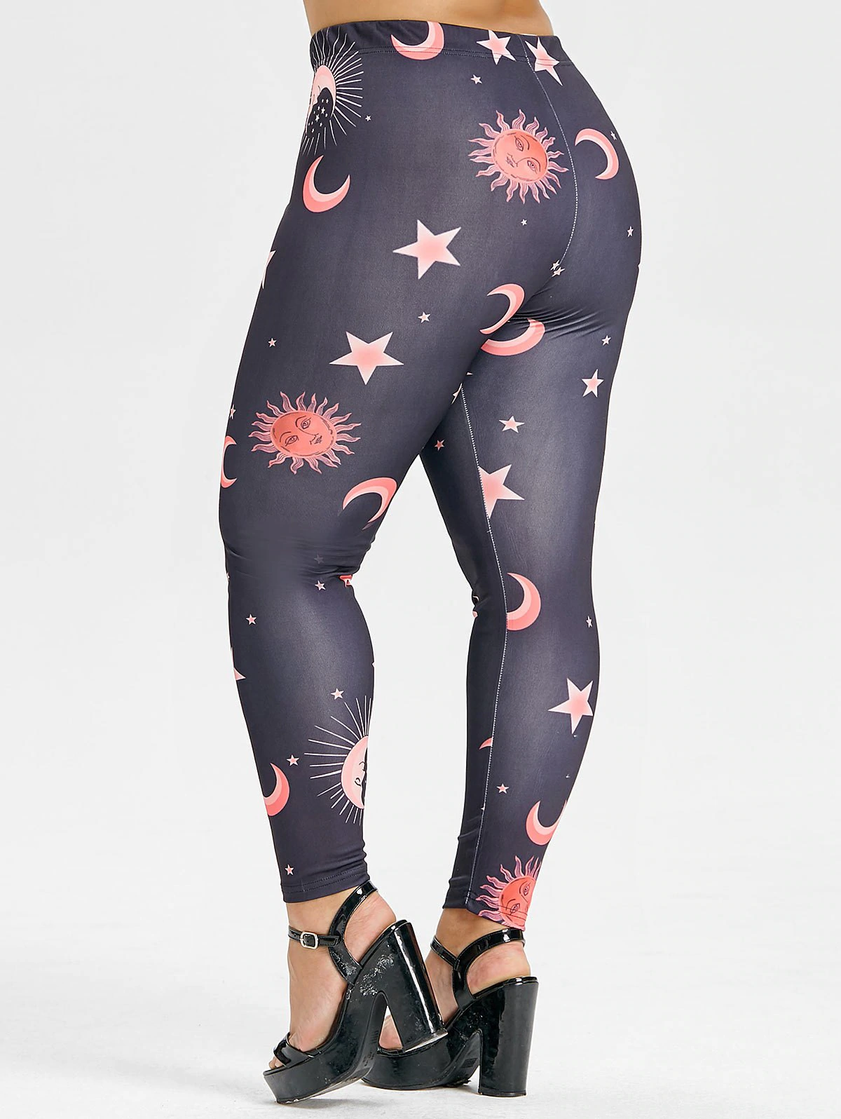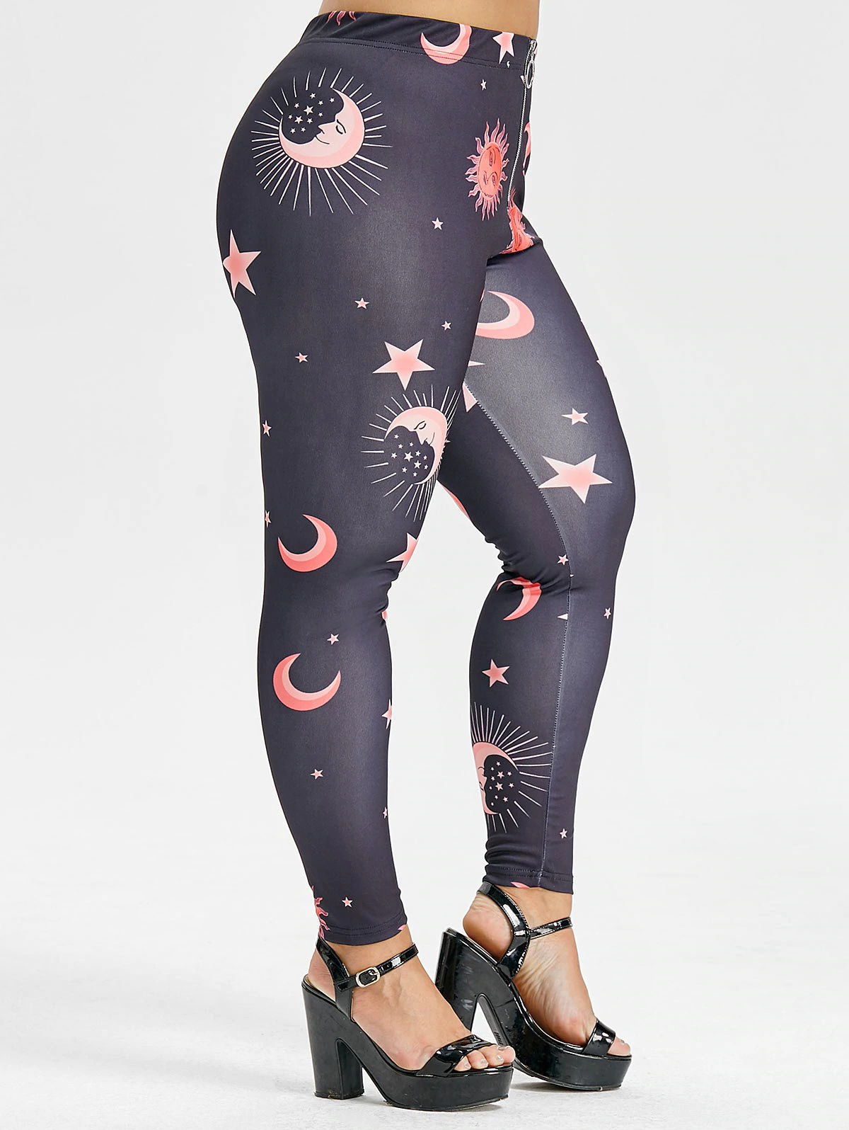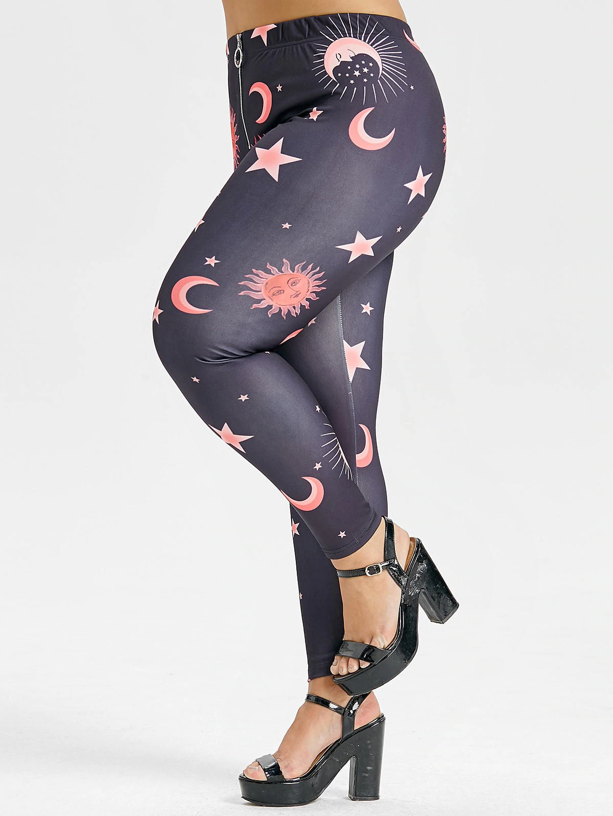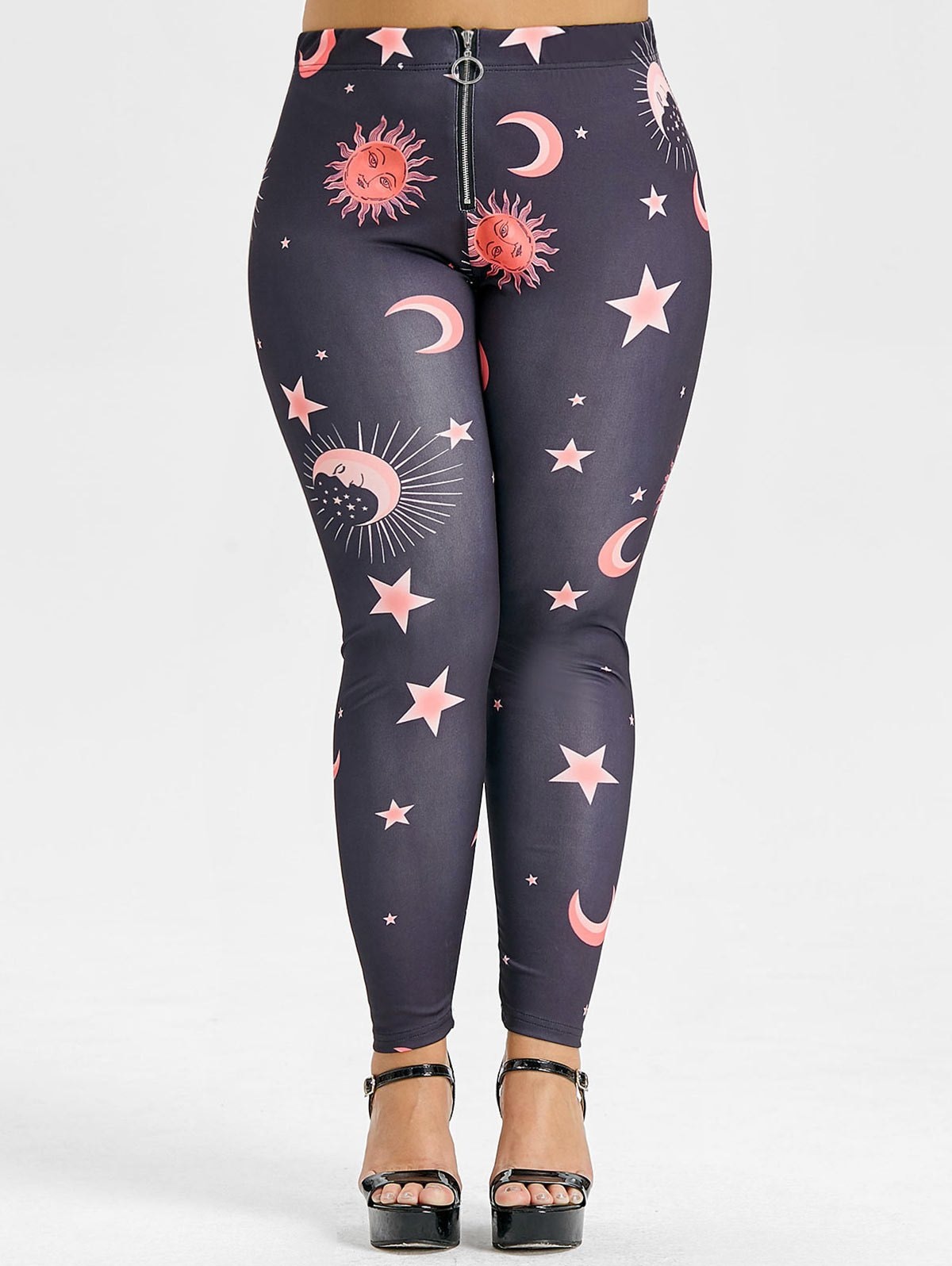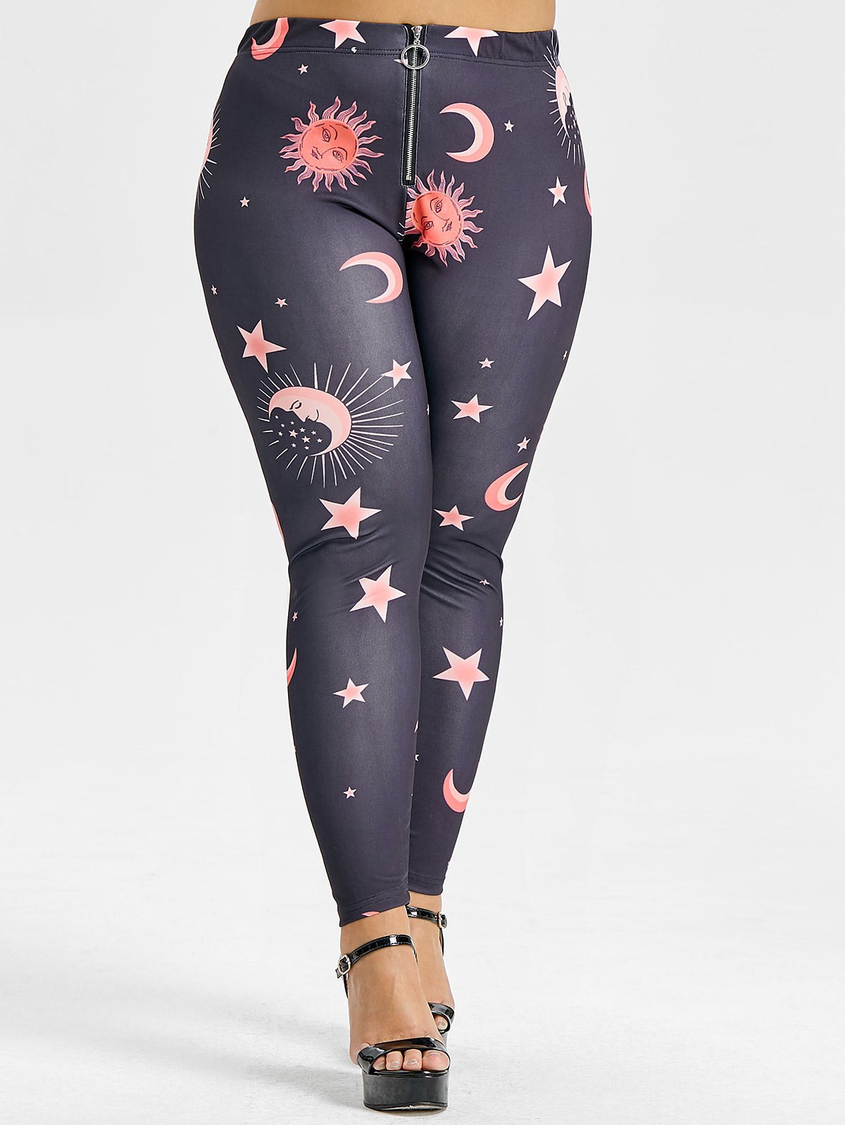 Plus Size Front Zip Sun and Moon Leggings