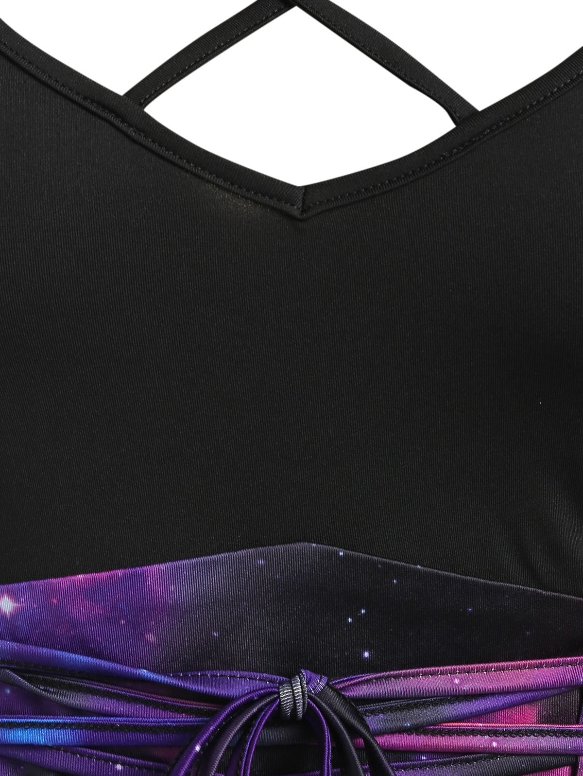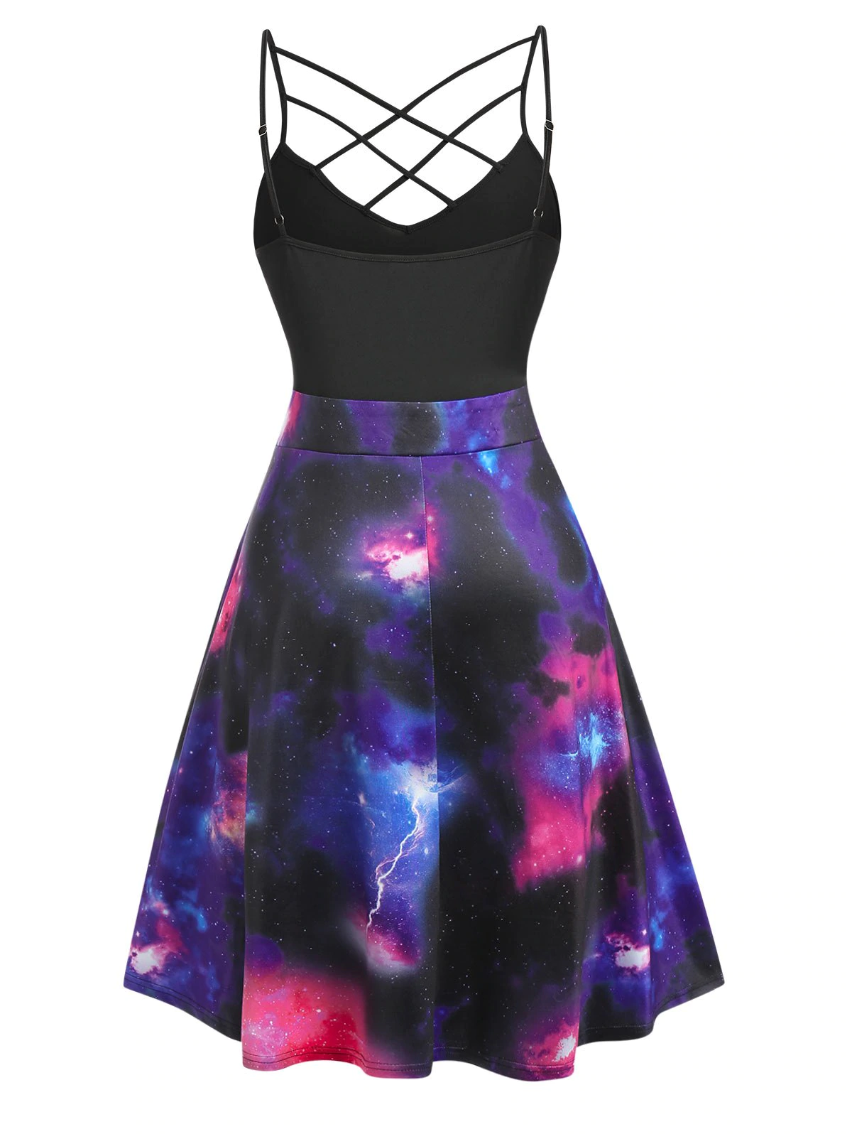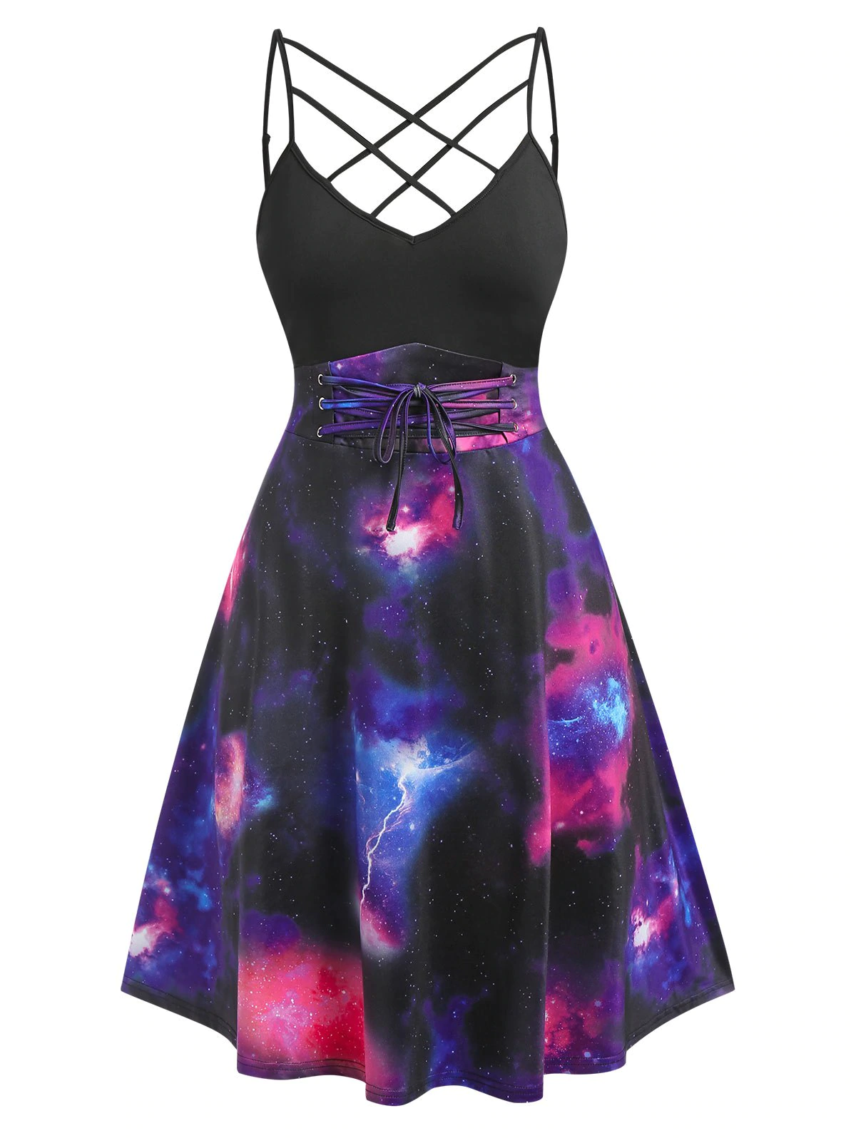 Plus Size Galaxy Lattice Lace-up A Line Dress