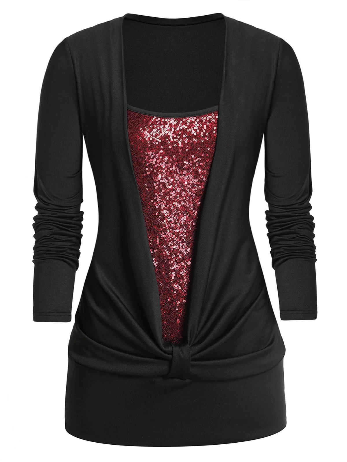 Take your fashion with this long-sleeved T-shirt in soft material. It features flattering a draped front with knot detail and sparkling sequins which gives it a very feminine charm.