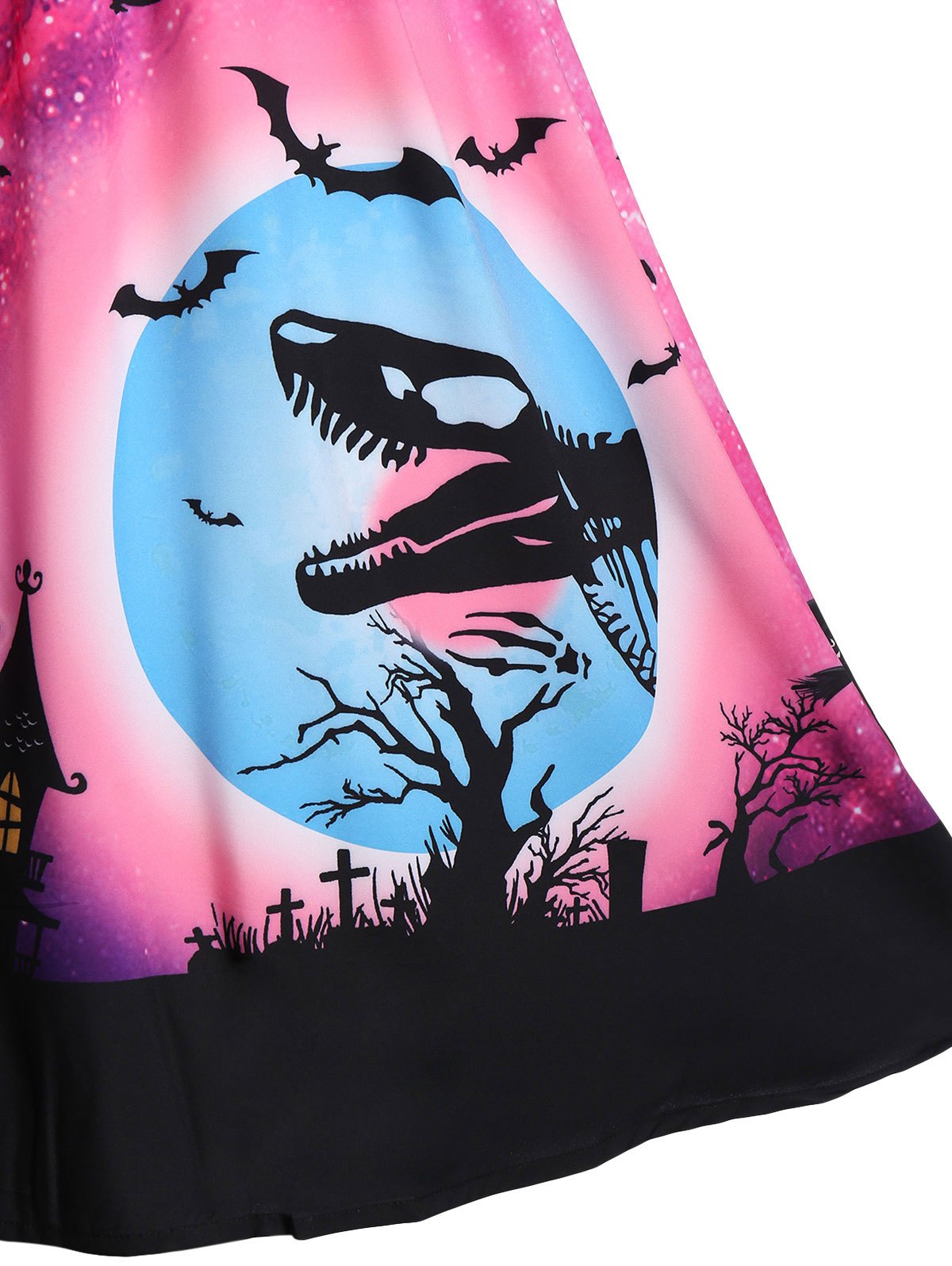 Plus Size Halloween Bat Priny Fit And Flare Vintage Dress