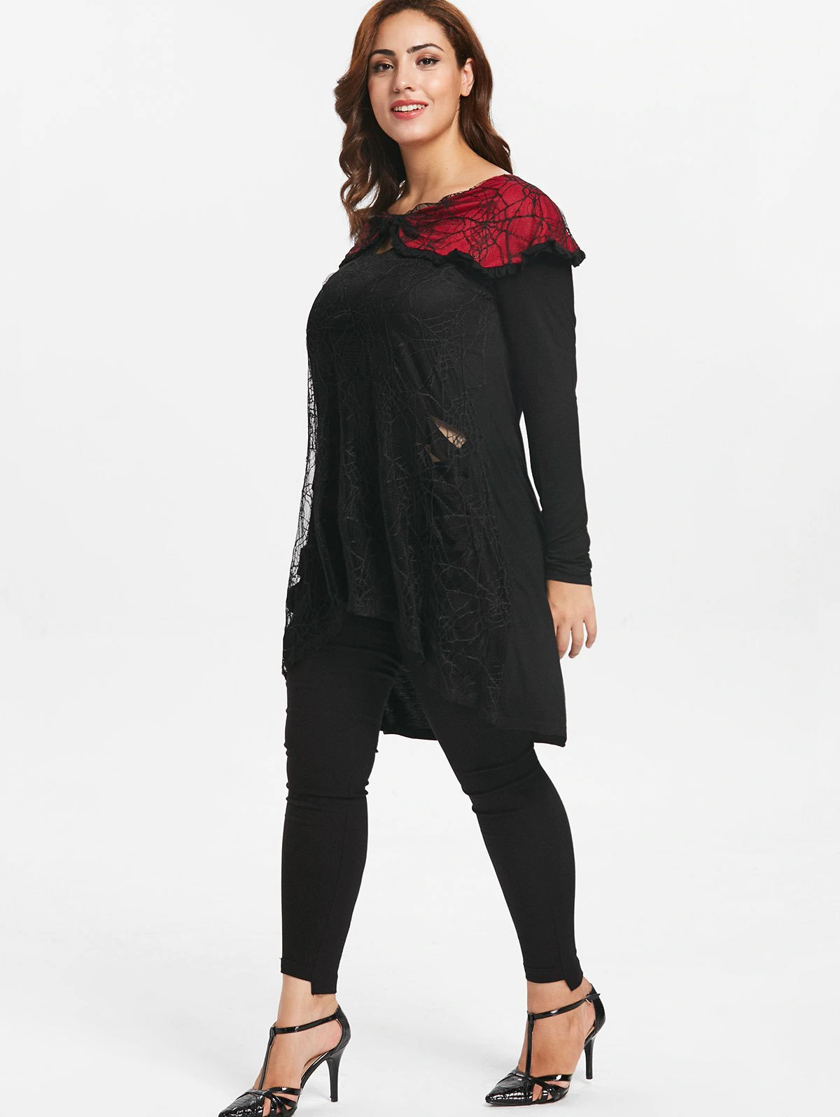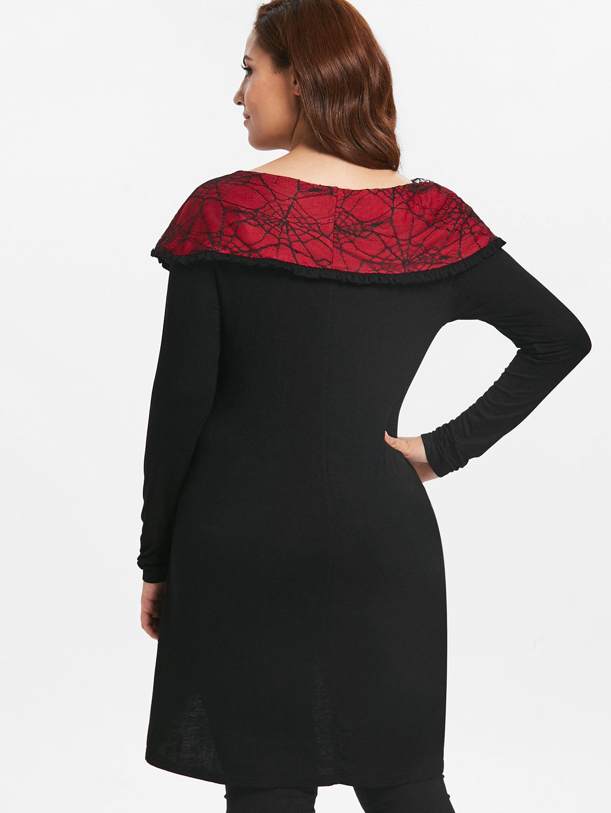 Plus Size Halloween Lace Insert Tunic Keyhole Top