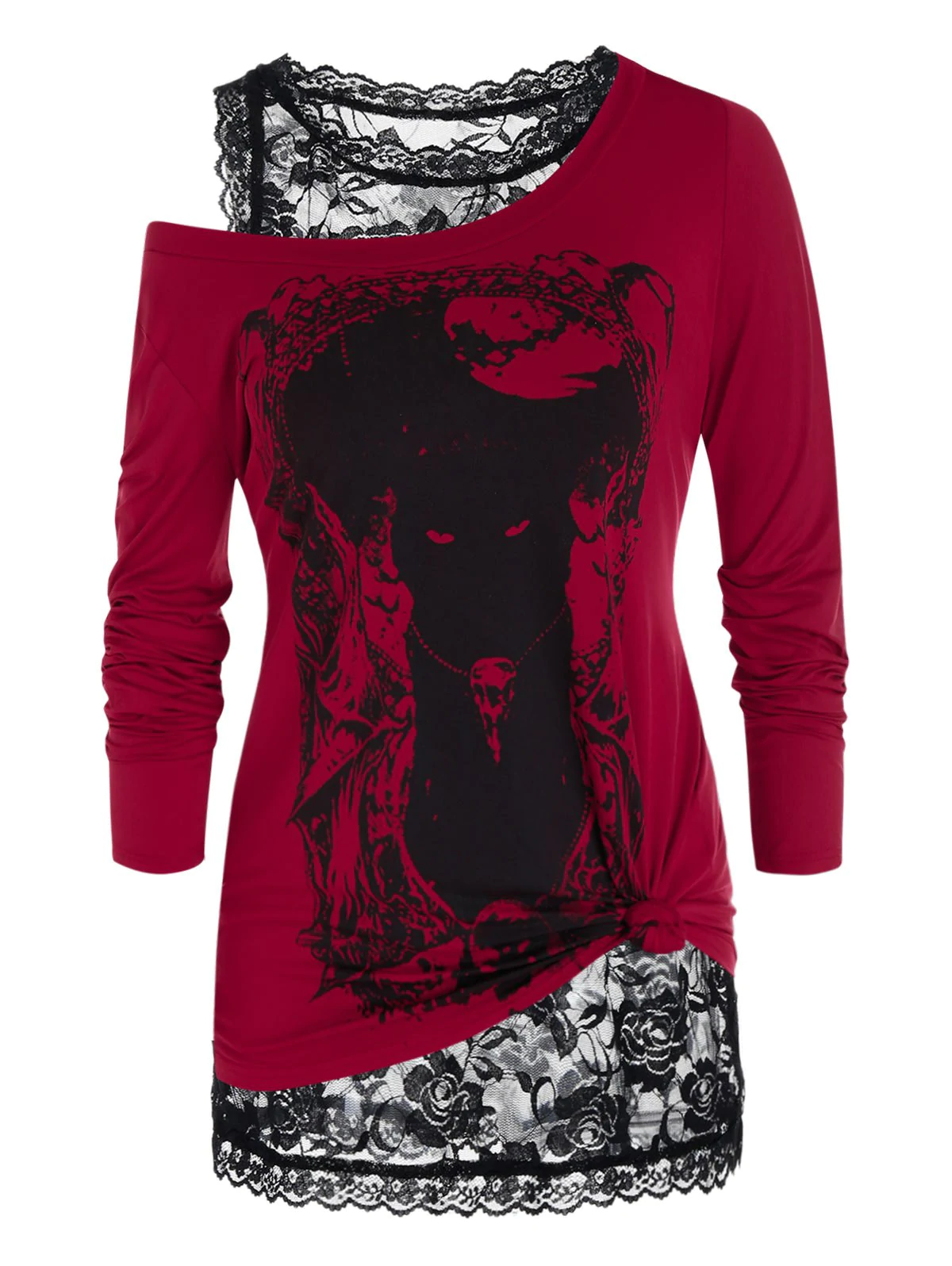Plus Size Halloween Print Long Sleeve T-shirt and Lace Tank Top