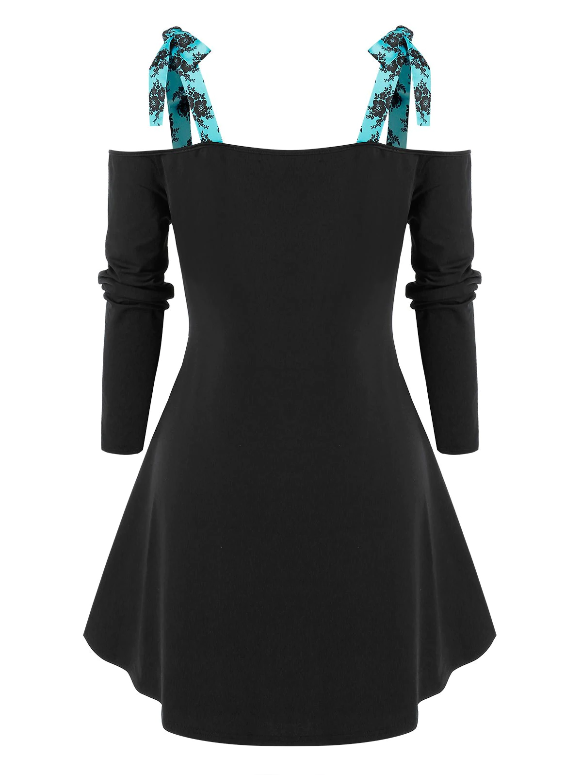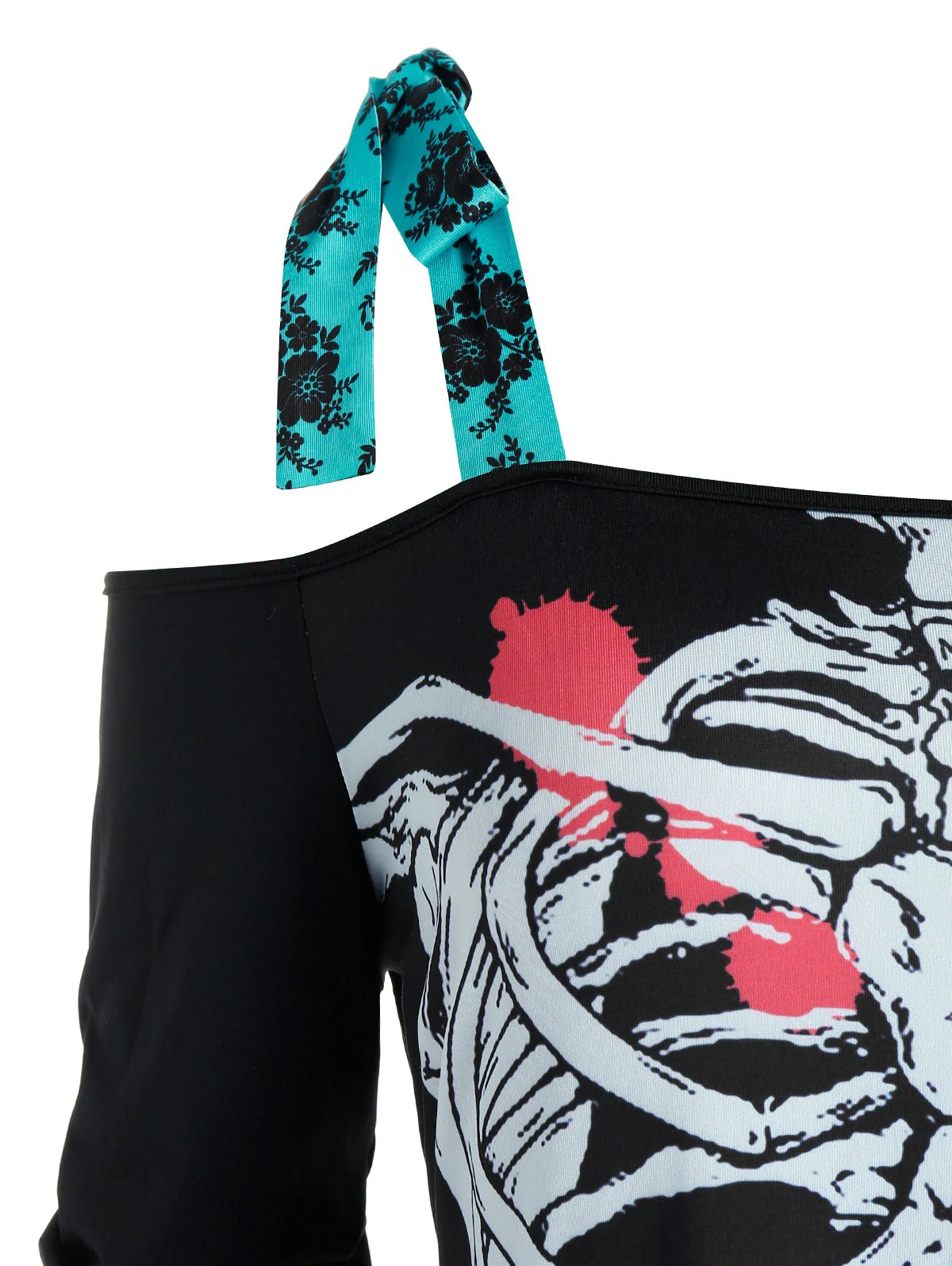 Plus Size Halloween Skeleton Tie Open Shoulder Tee