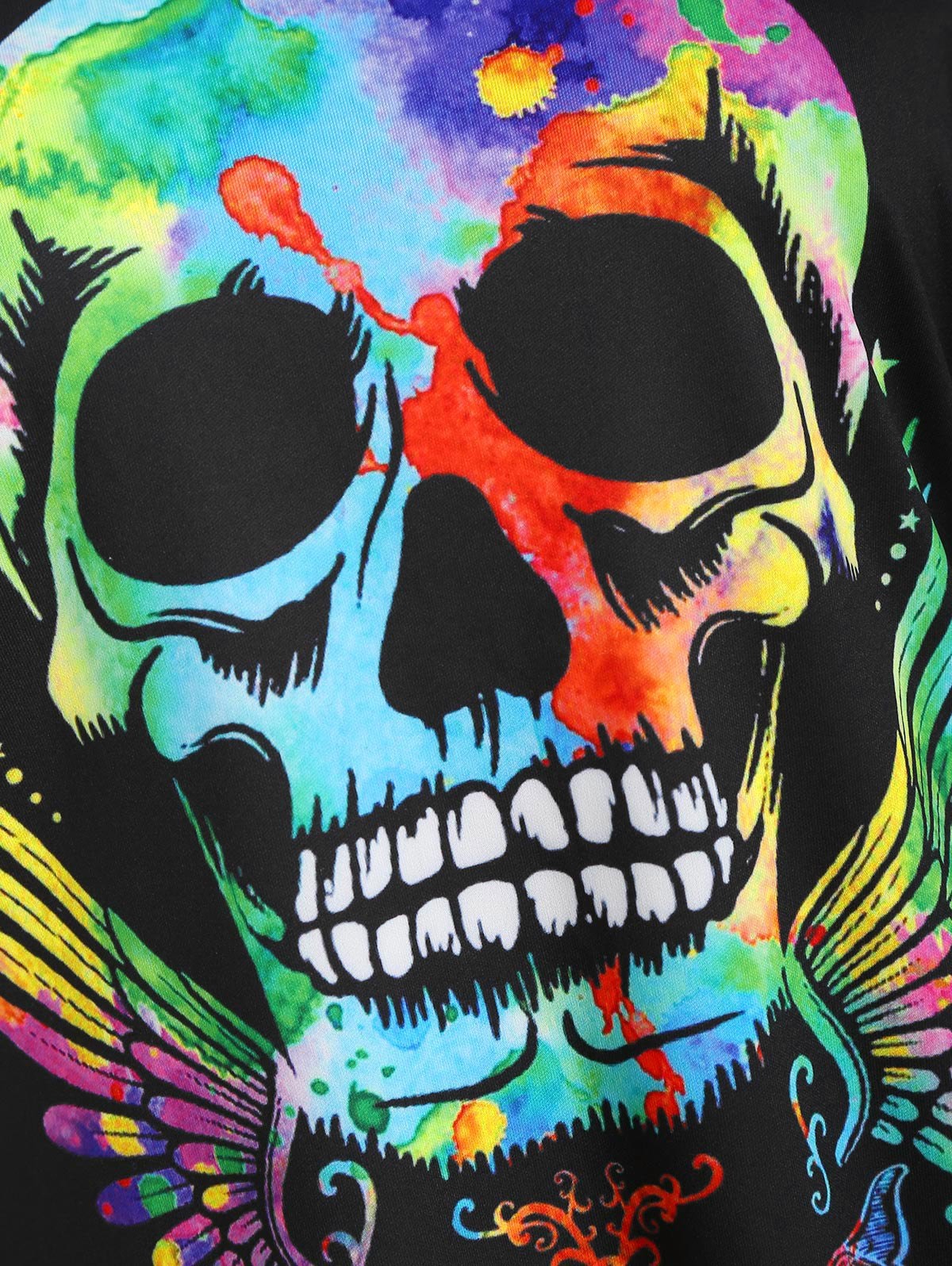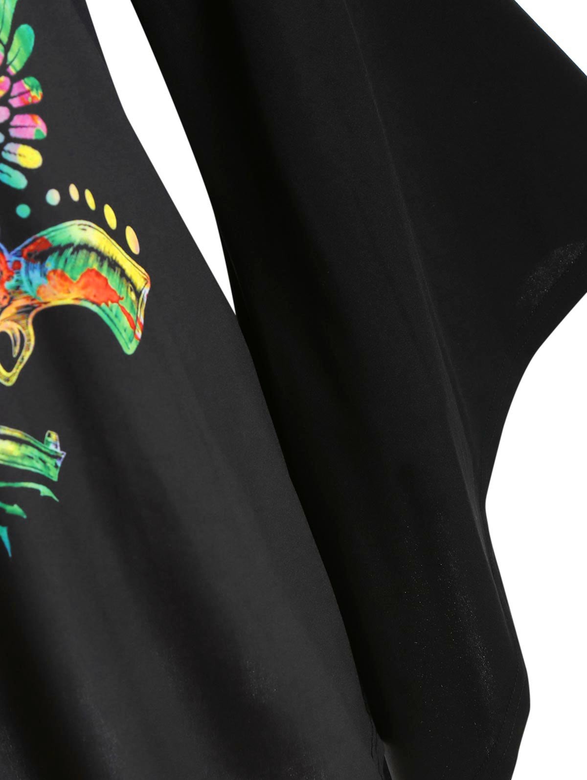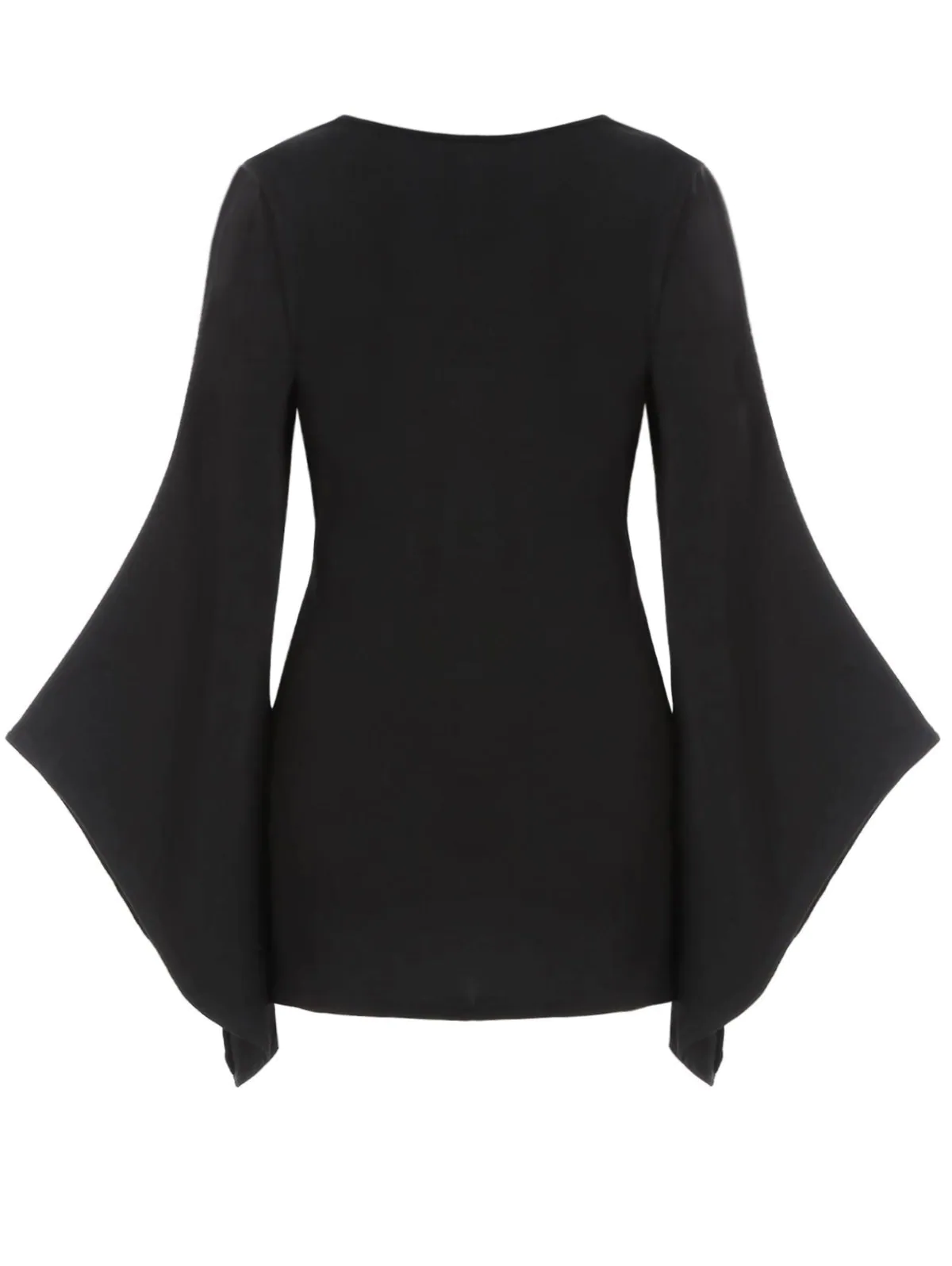 Plus Size Halloween Skull Gun Print Bell Sleeve T Shirt