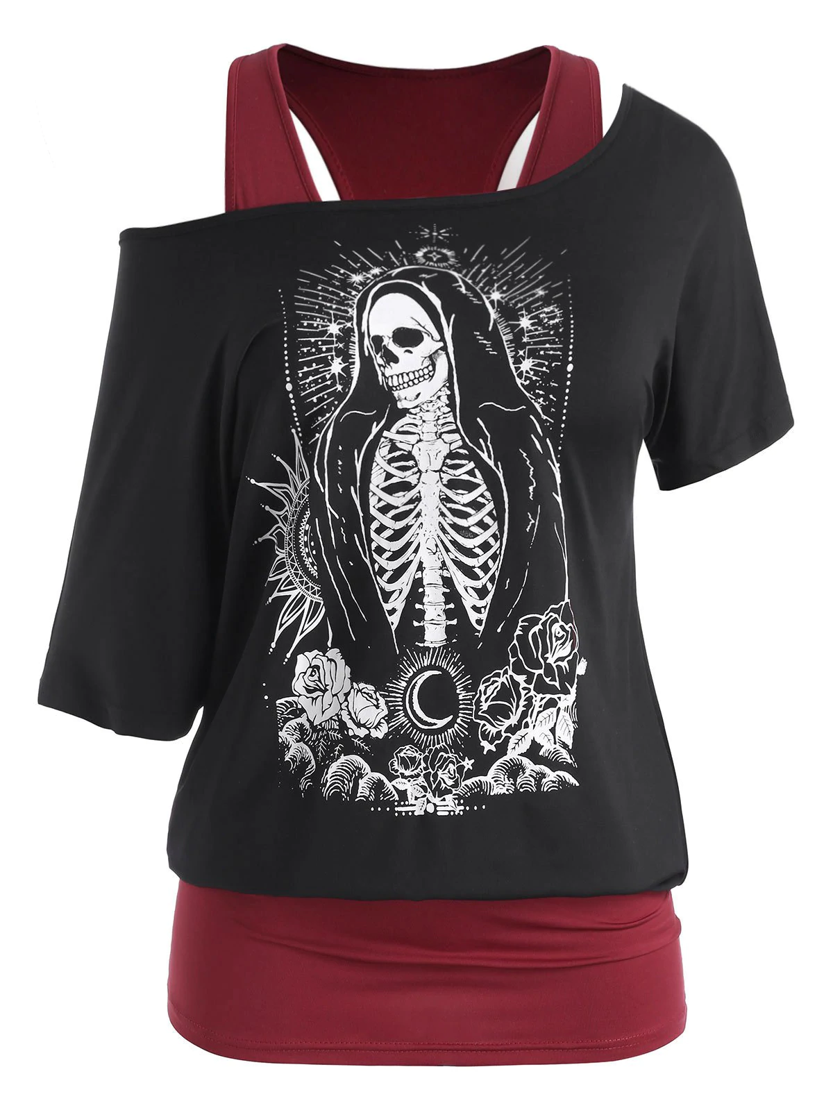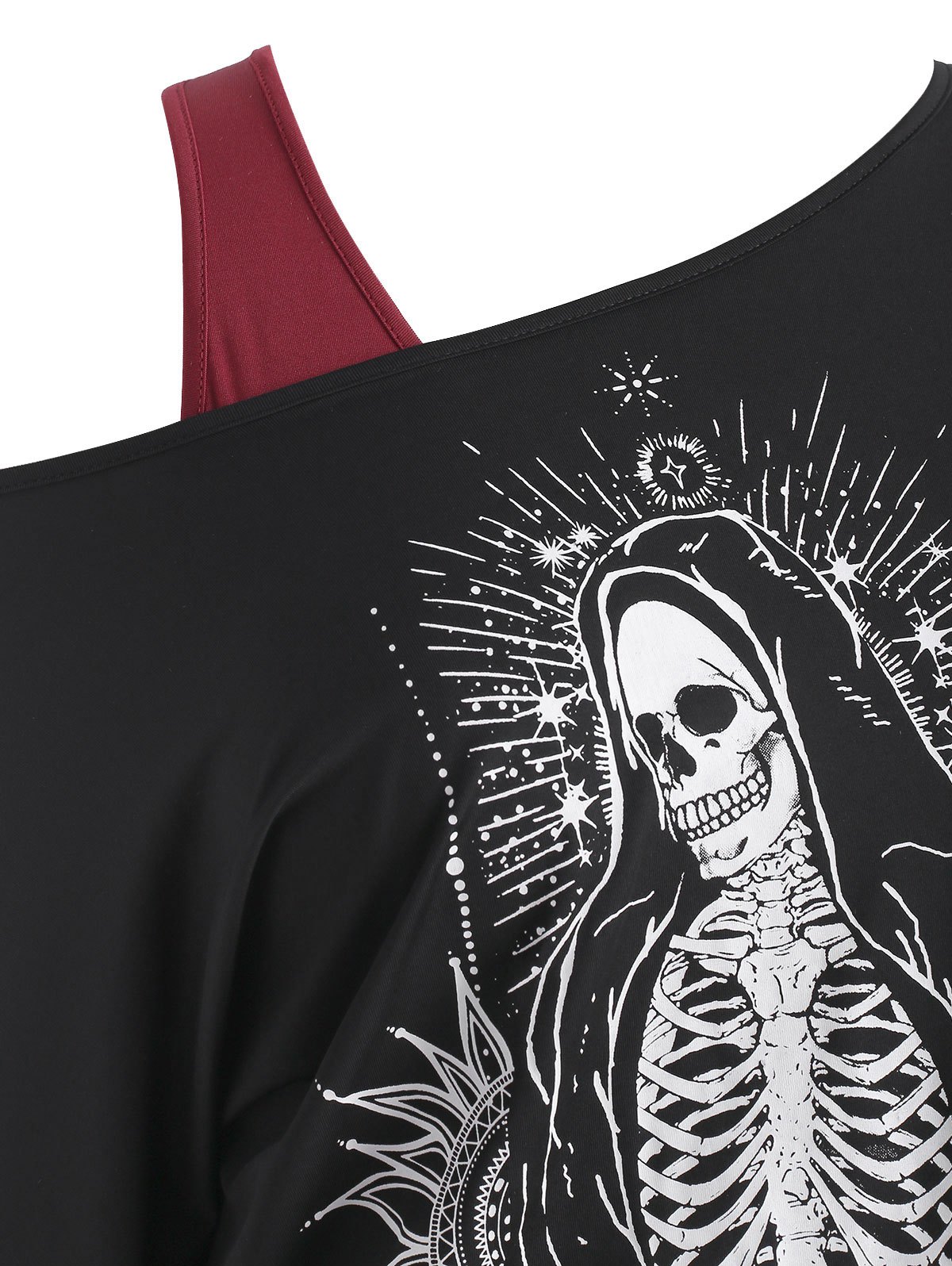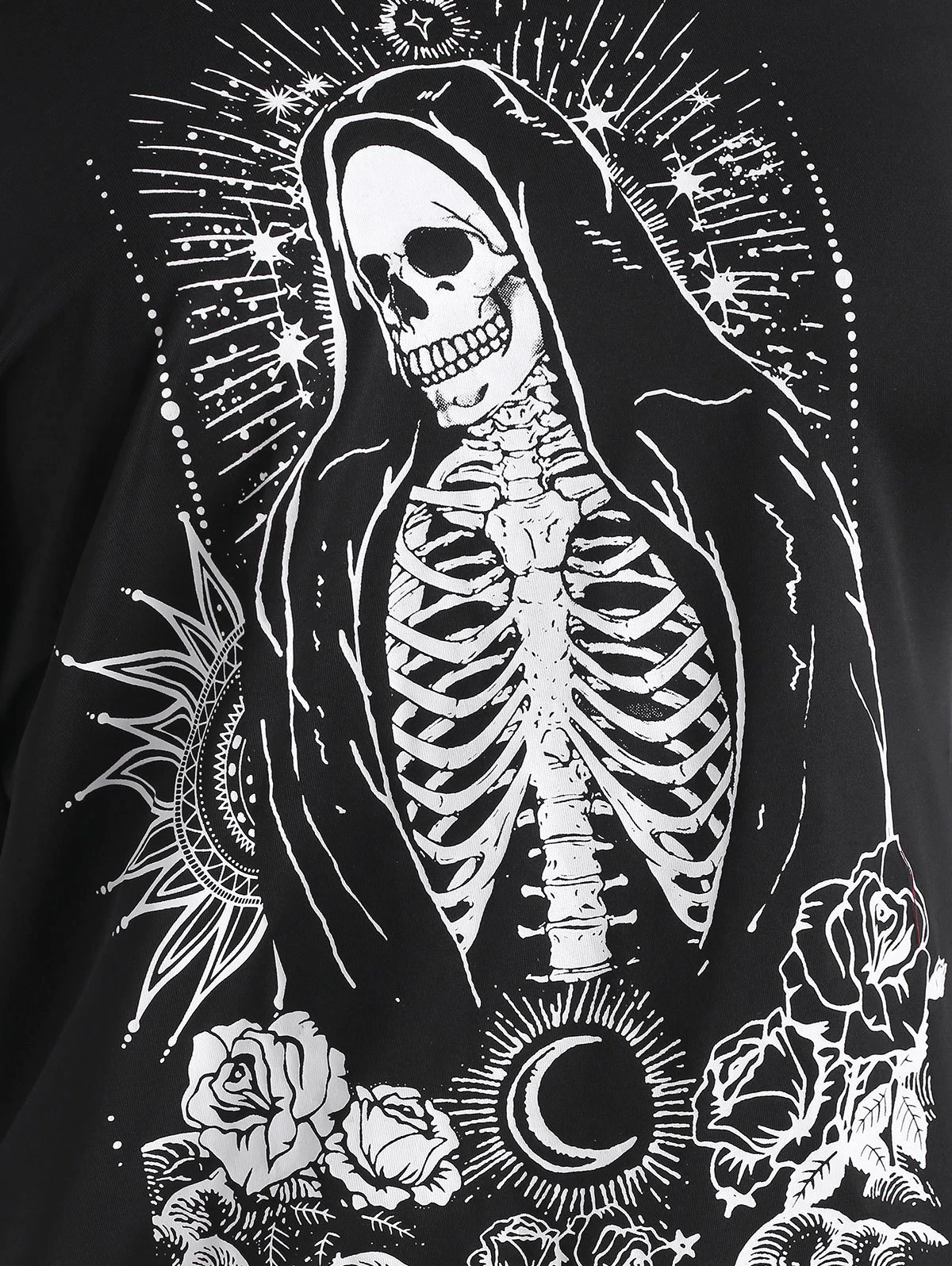 Plus Size HalloweenBatwing Sleeve Skeleton Flower Blouson T-shir