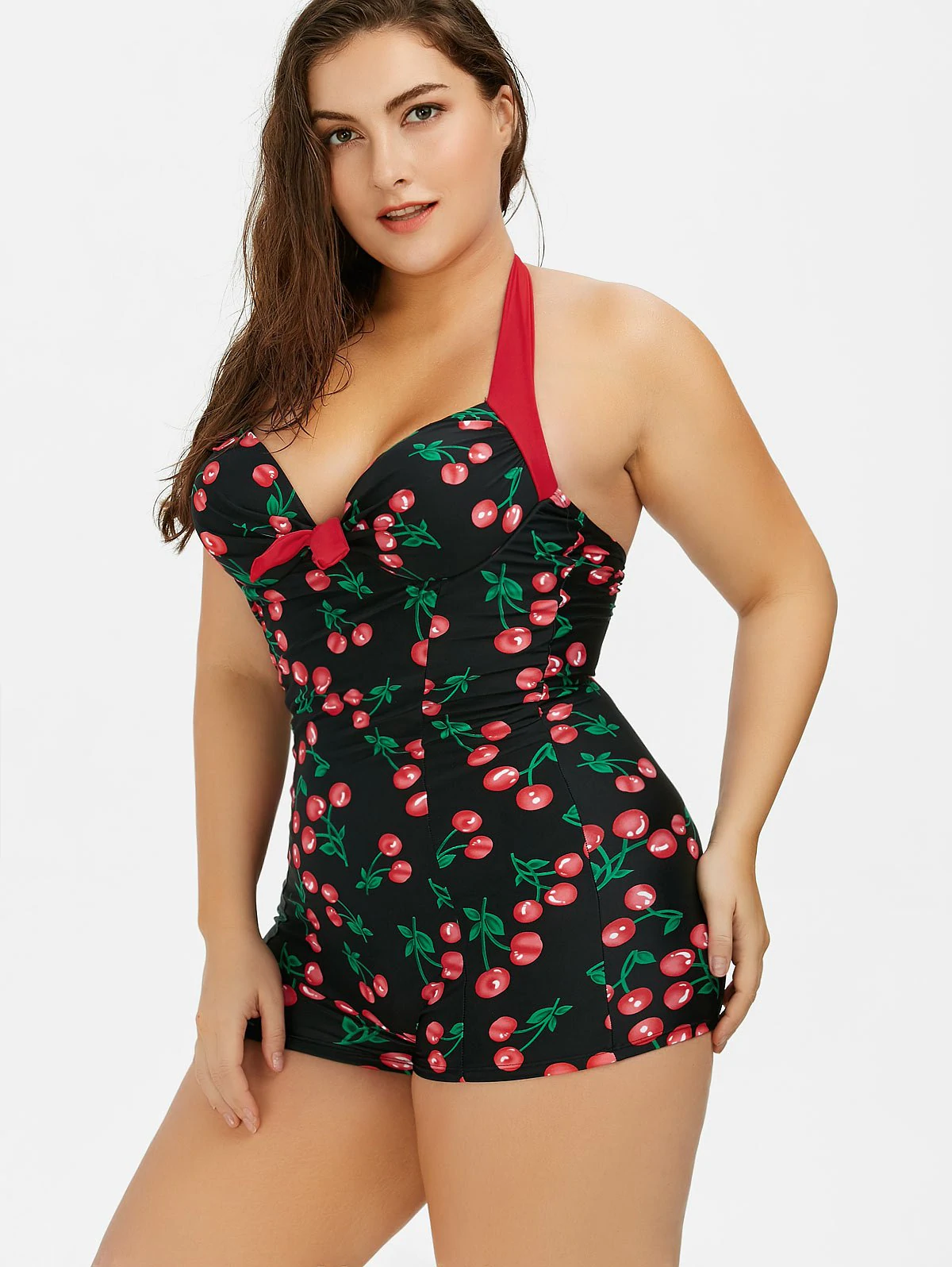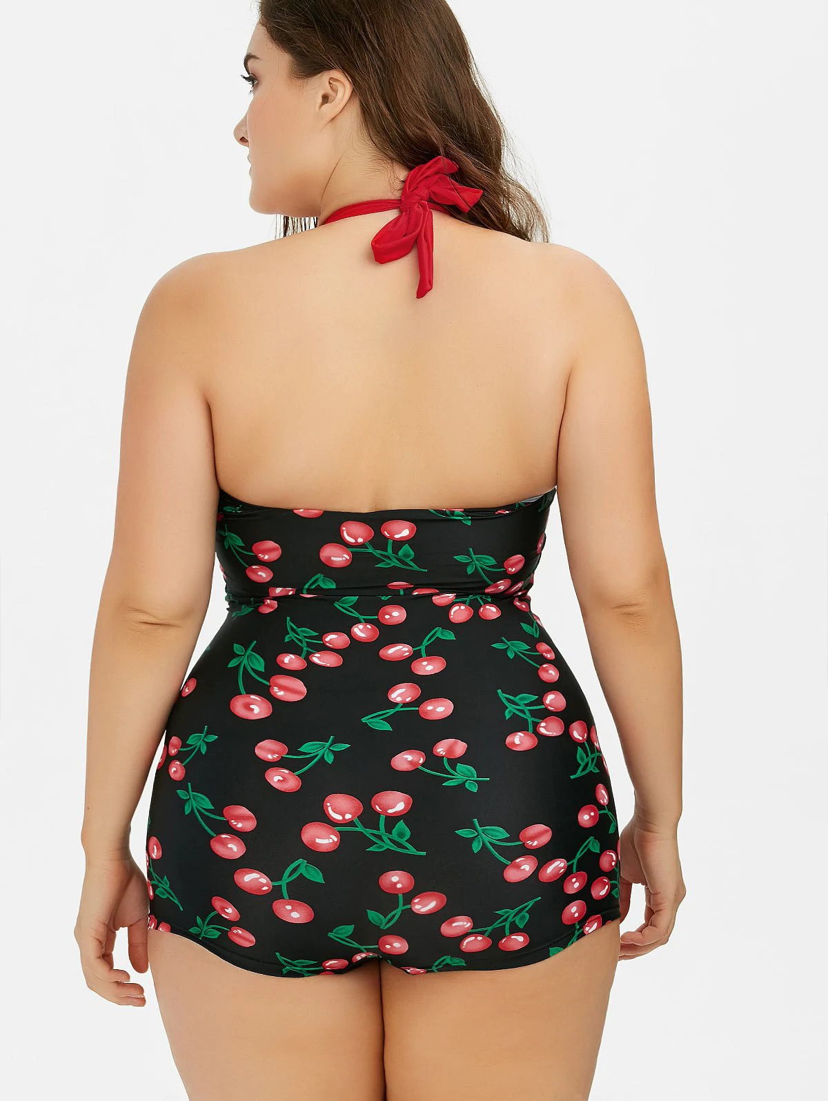 Plus Size Halter Cherry Boyshort Vintage Bathing Suit