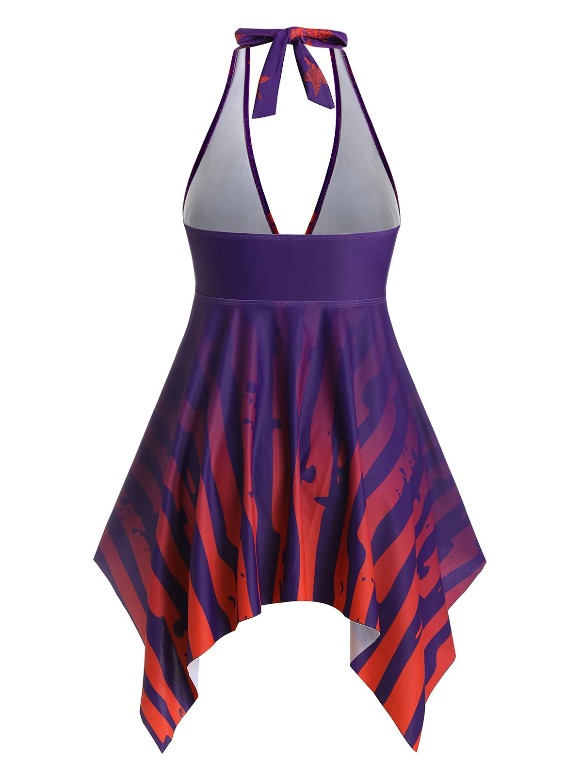 Plus Size Handkerchief Star Striped Halter Tie Tankini Swimwear