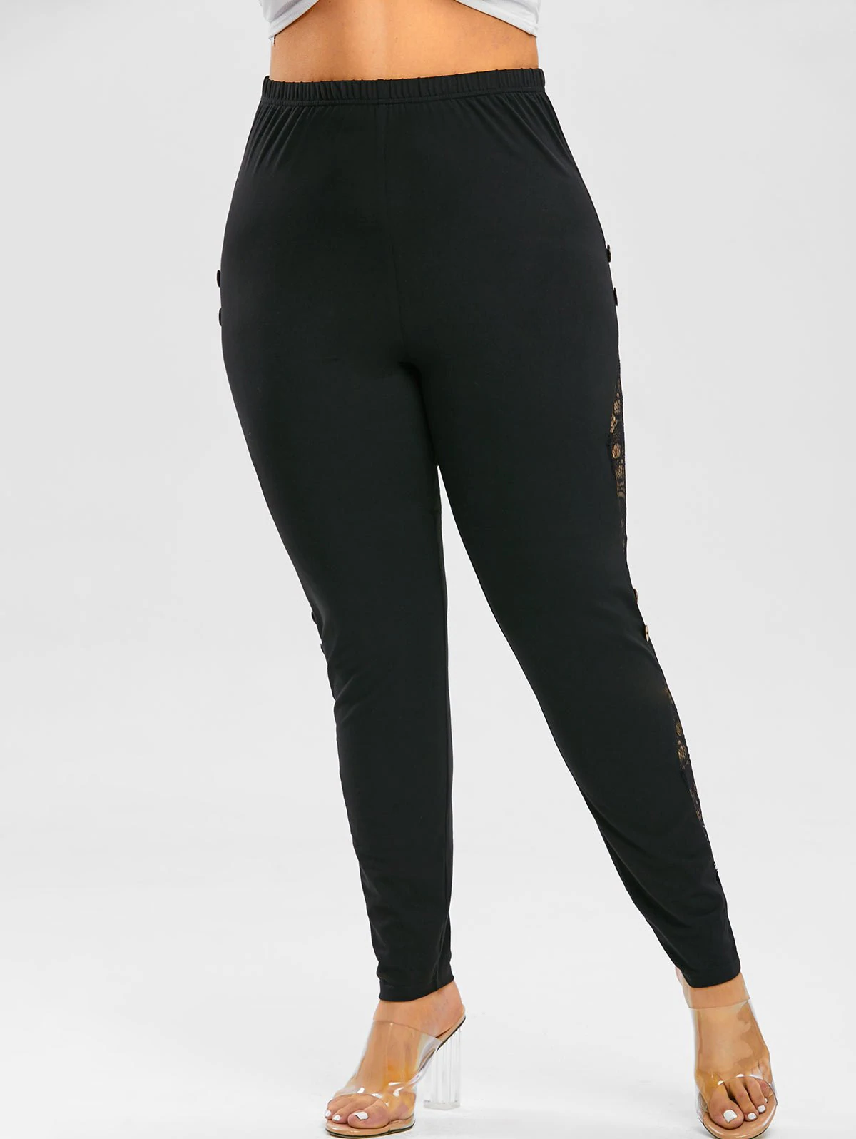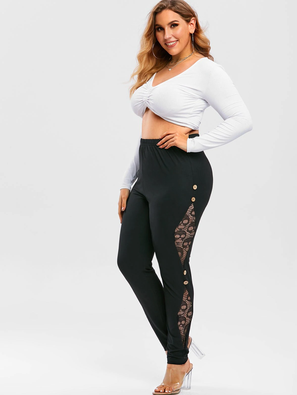 1 review for Plus Size High Rise Lace Insert Buttoned Pants