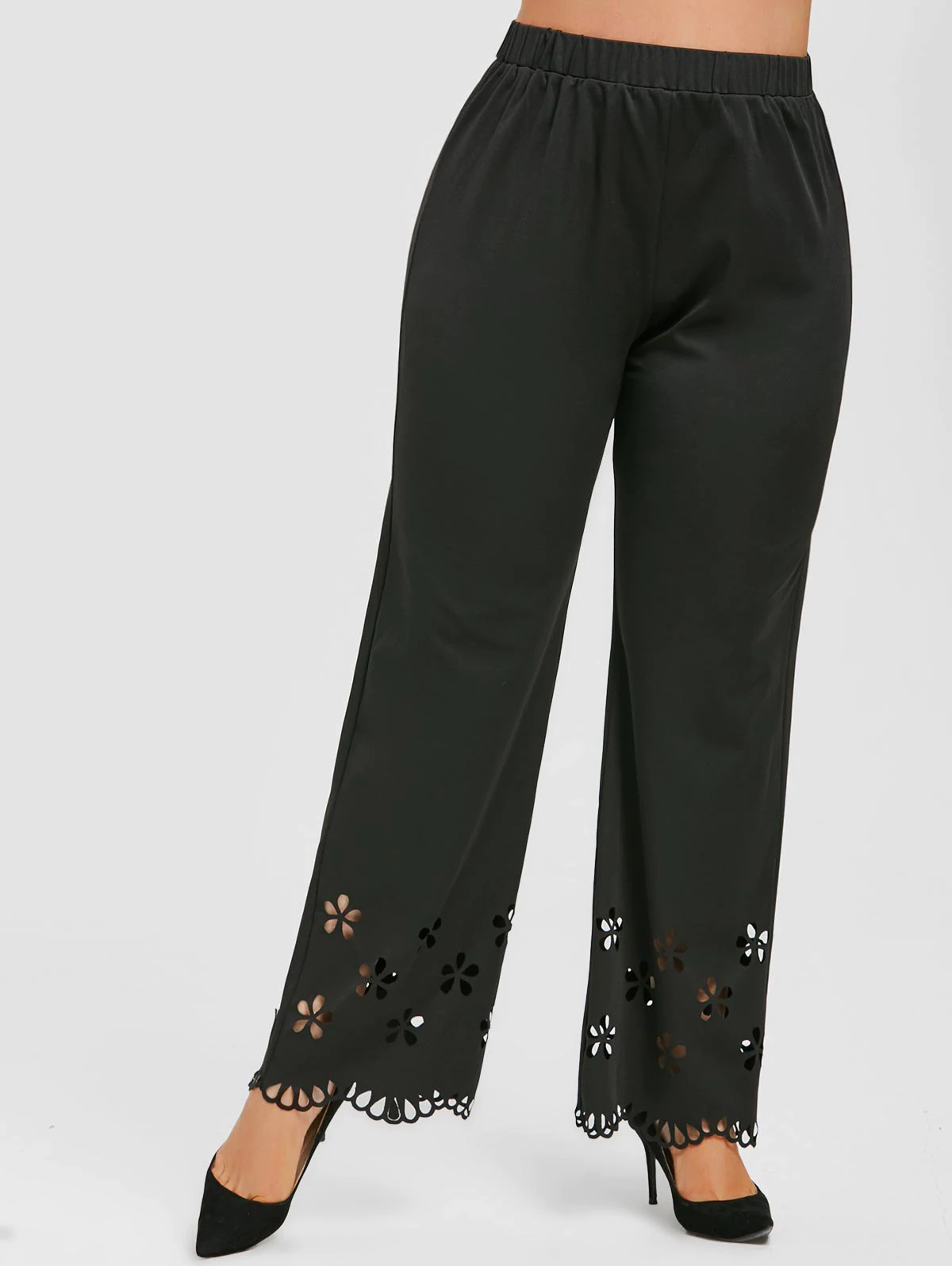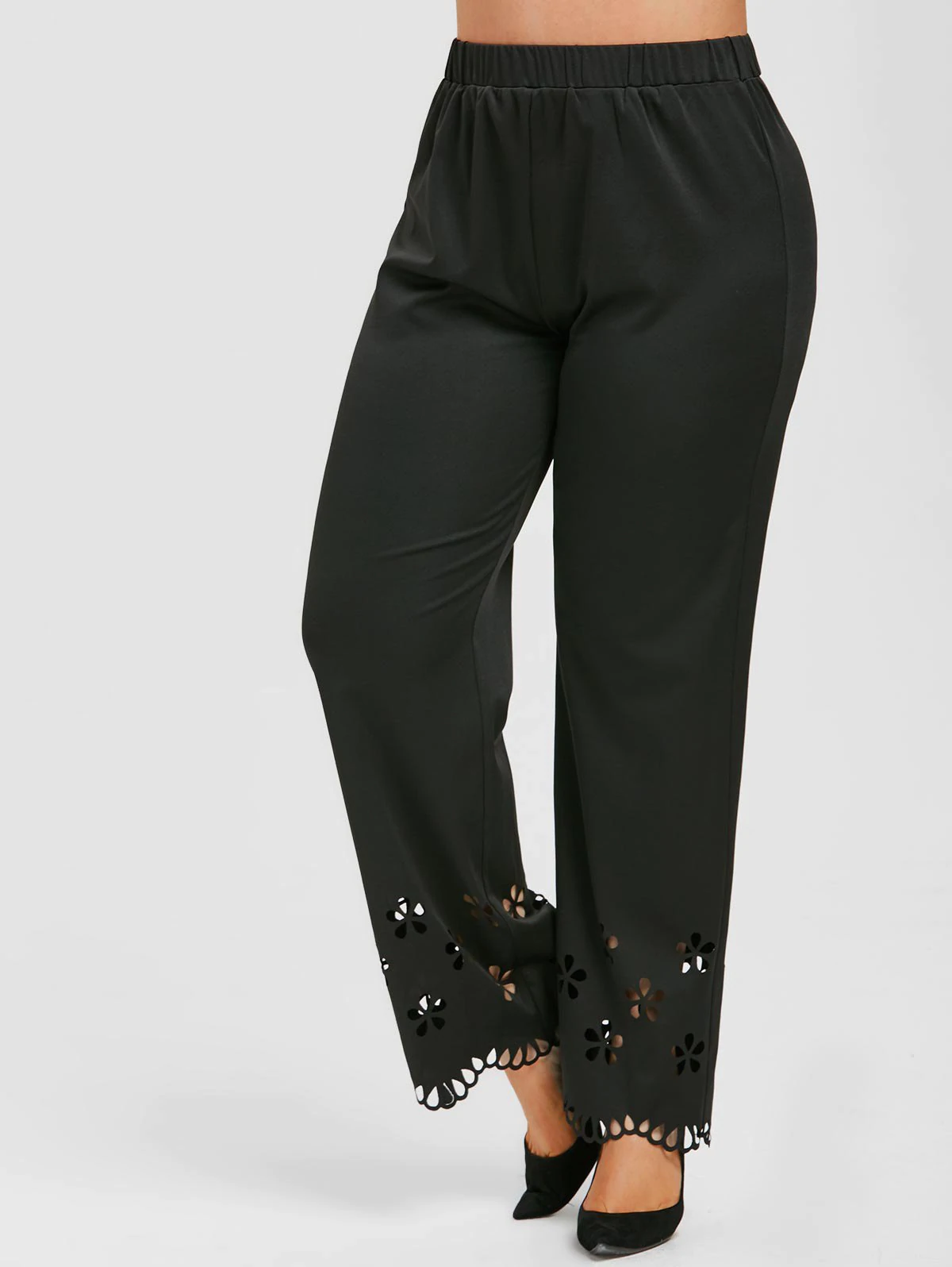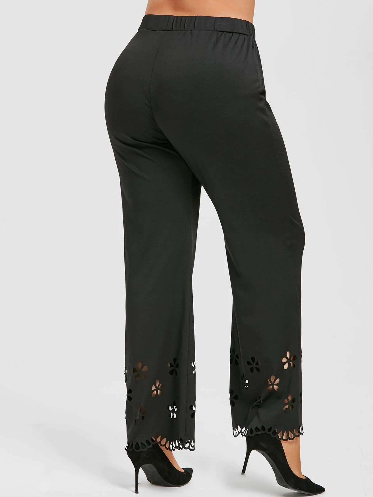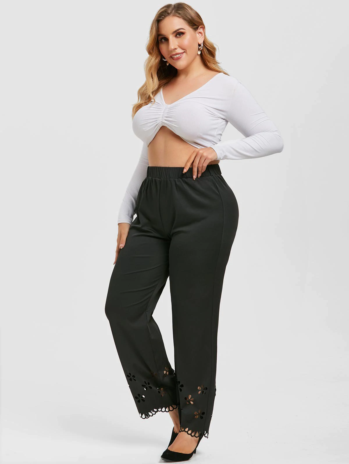 These pants feature a unique laser-cut design and a high waist, in a straight silhouette. Team them with a crop top or pair it with a black cami top.