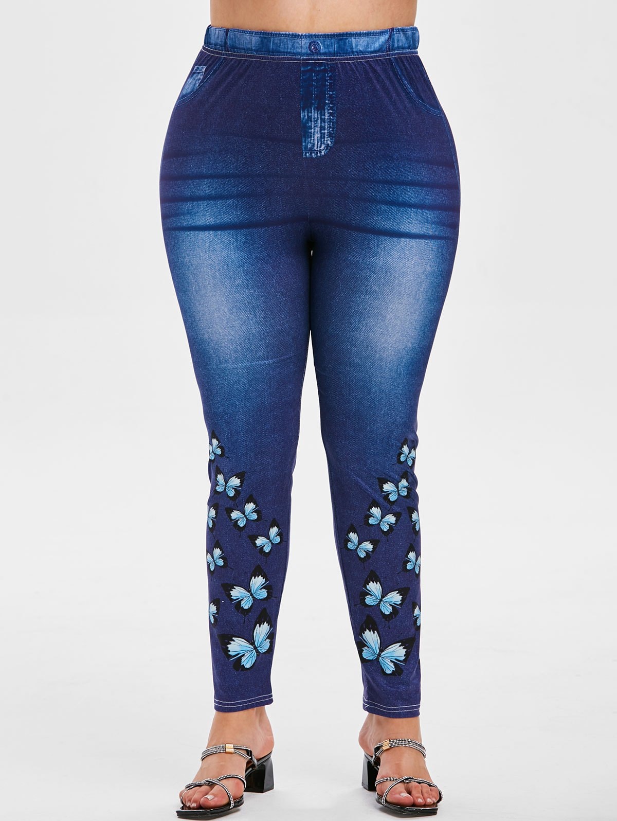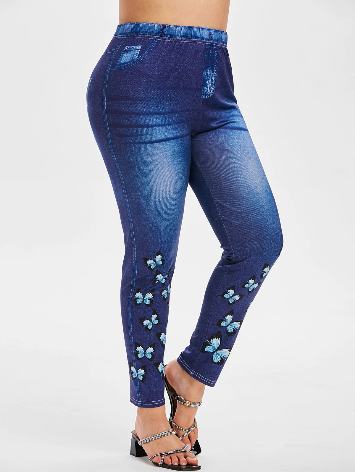 Plus Size High Waist Butterfly 3D Denim Print Jeggings