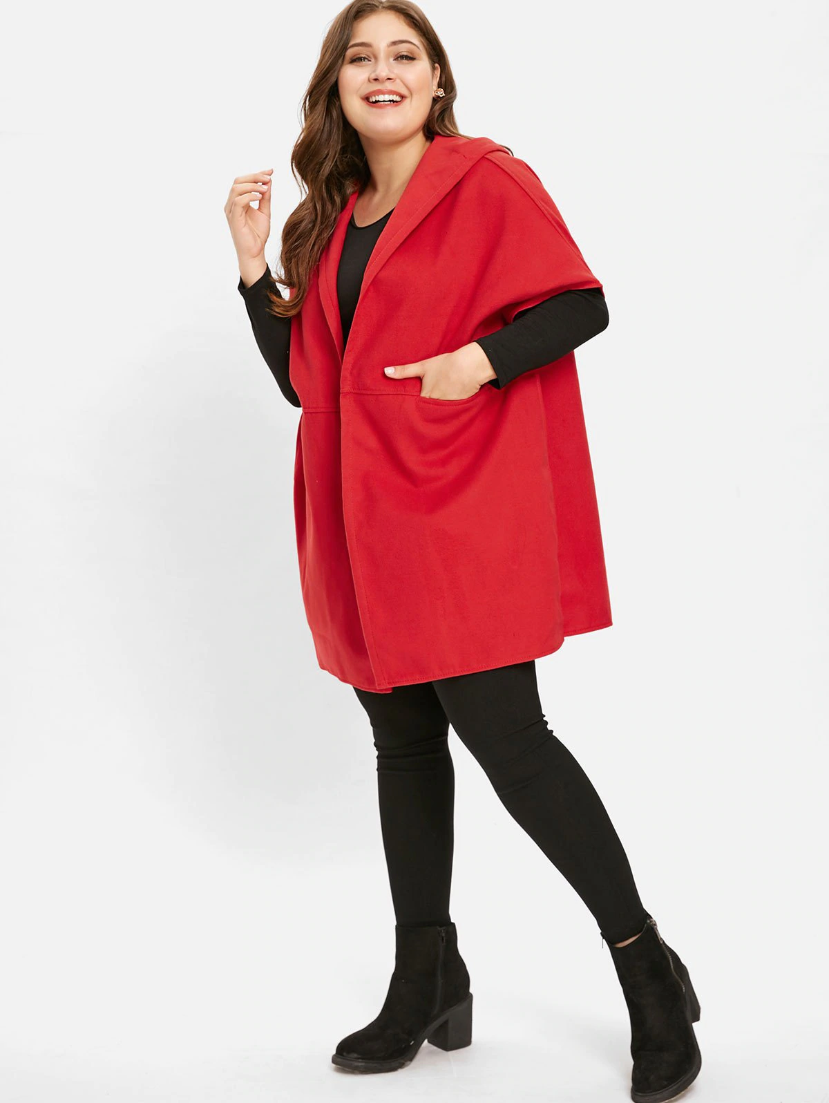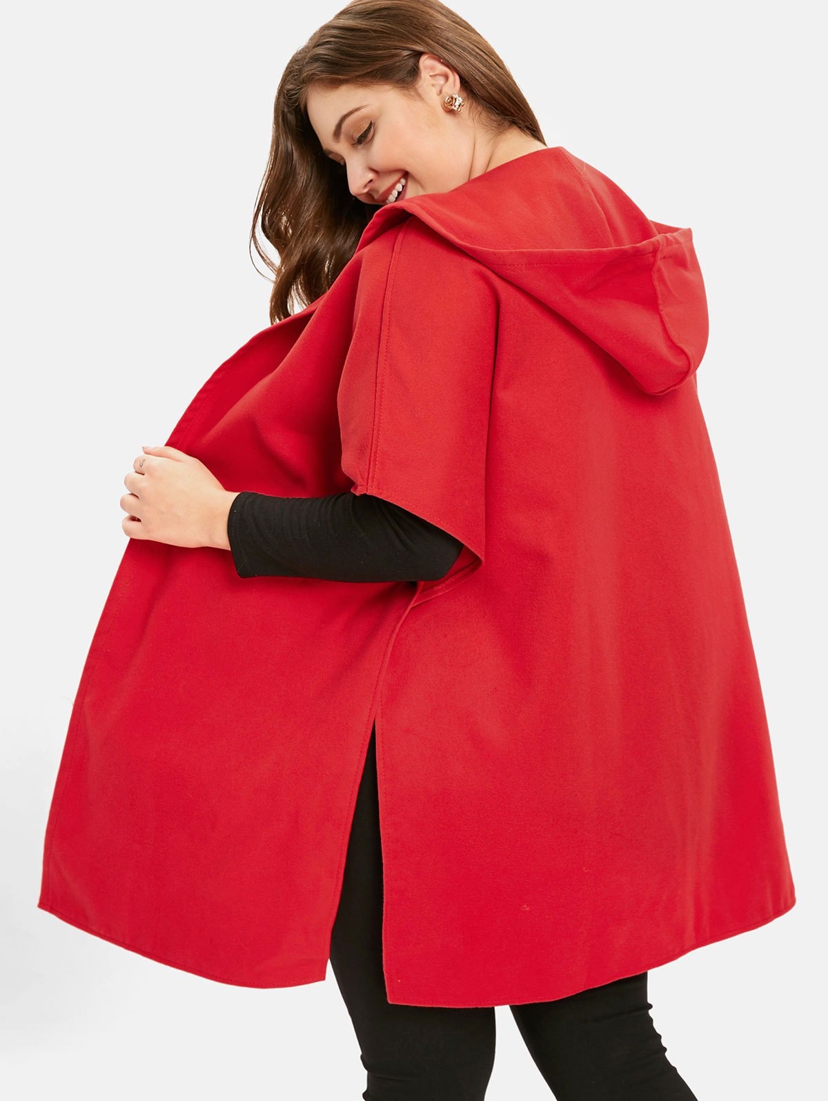 Plus Size Hooded Tunic Coat