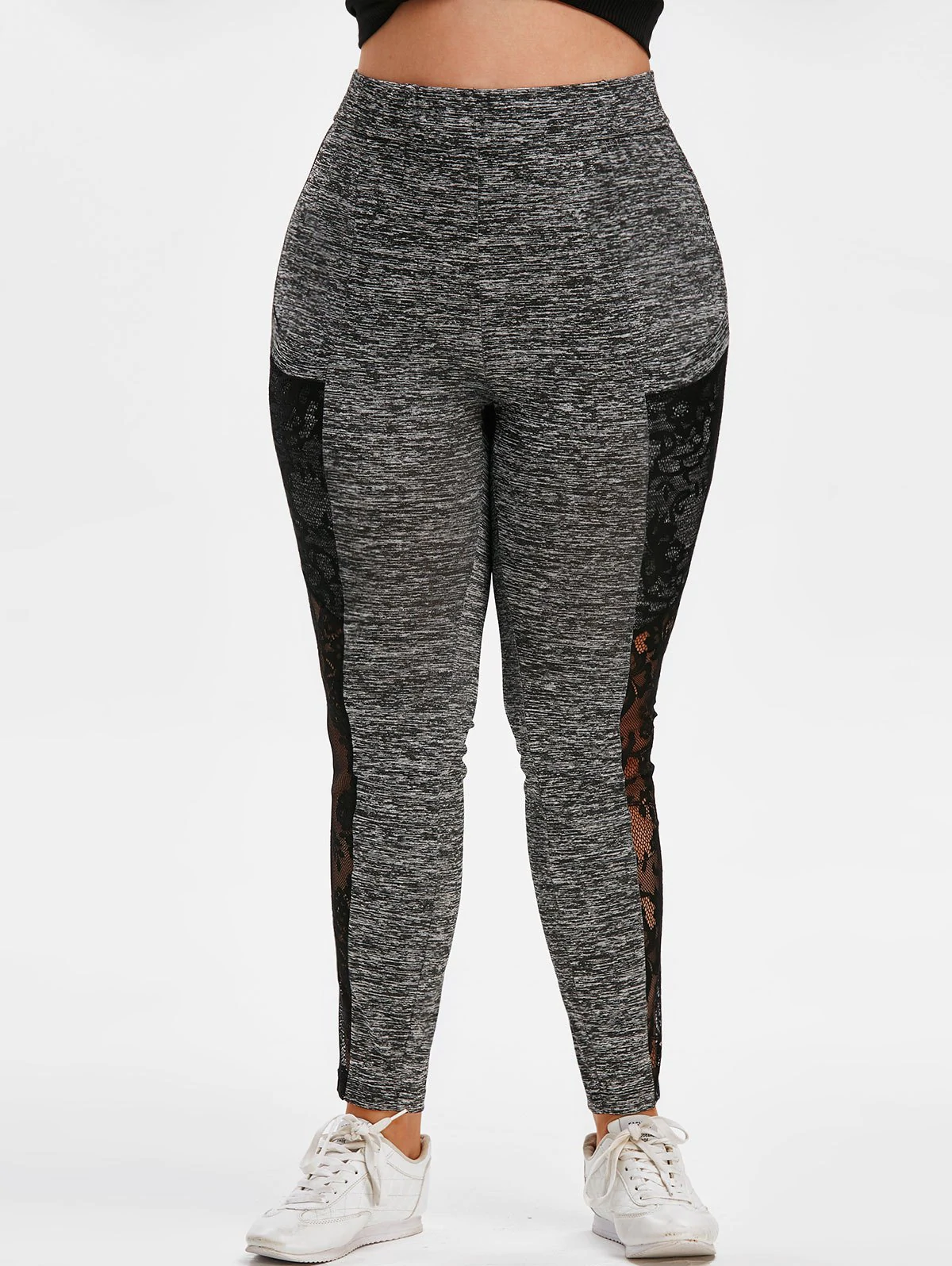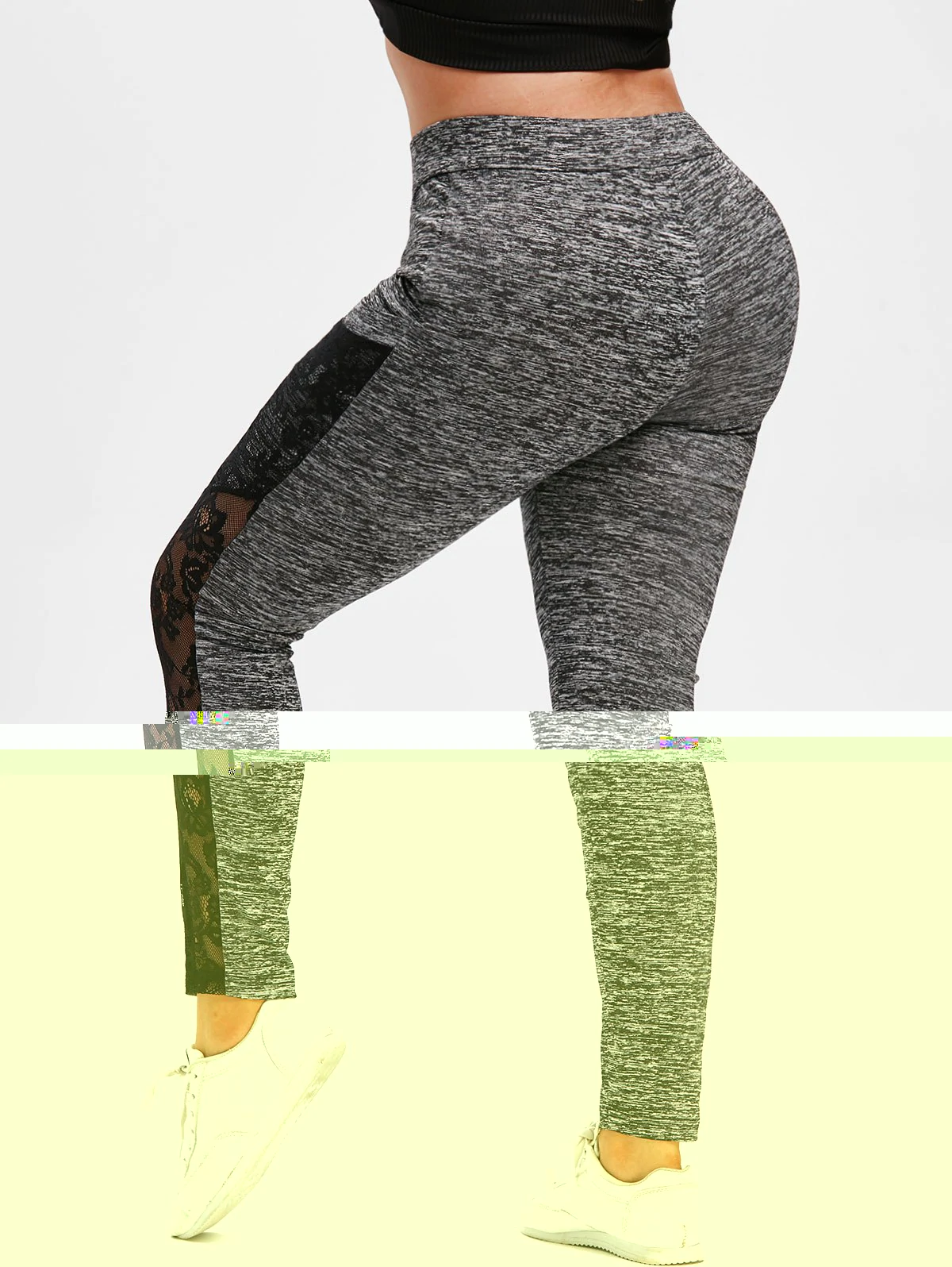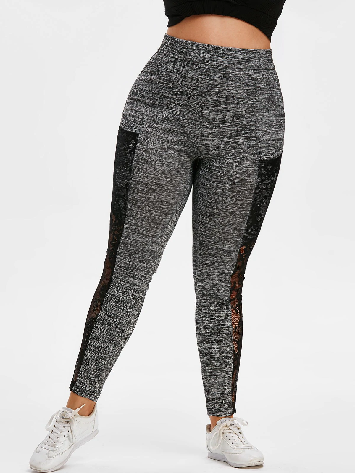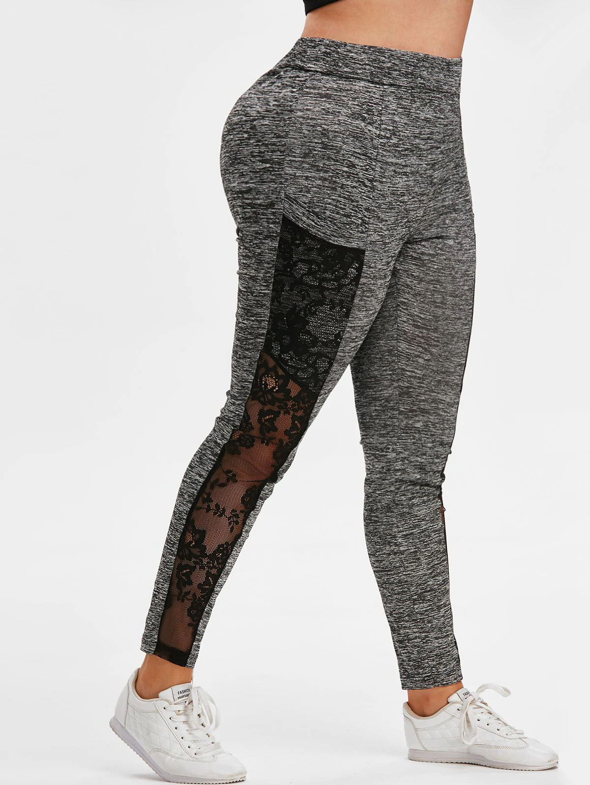 Plus Size Lace Insert Pockets Space Dye Leggings