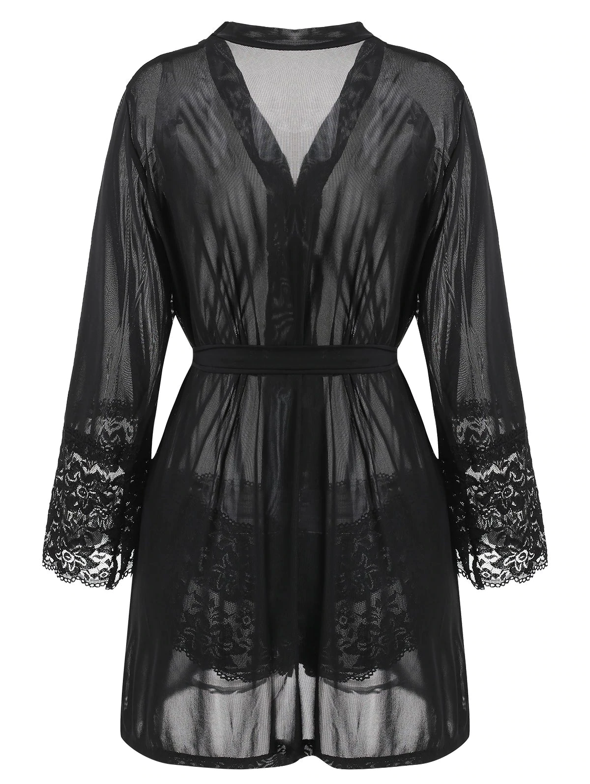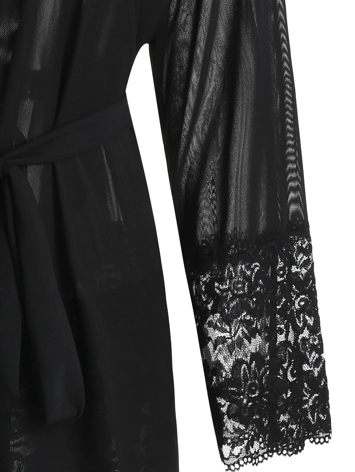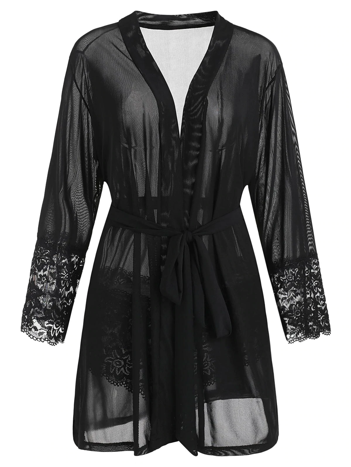 Wrap yourself in elegance with this women's sleep robe. Made of a lightweight fabric, this sophisticated robe feels great when you slip it on over your undergarments. This gorgeous robe has a sash at the waist you can tie which highlighting your shape, transparent lace panel at the sleeves cuffs and briefs for an added appeal. From morning till night, you will love slinking around in this alluring wrap.