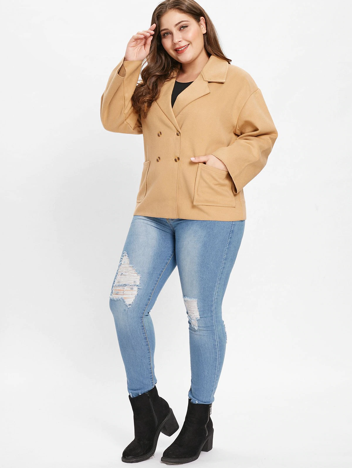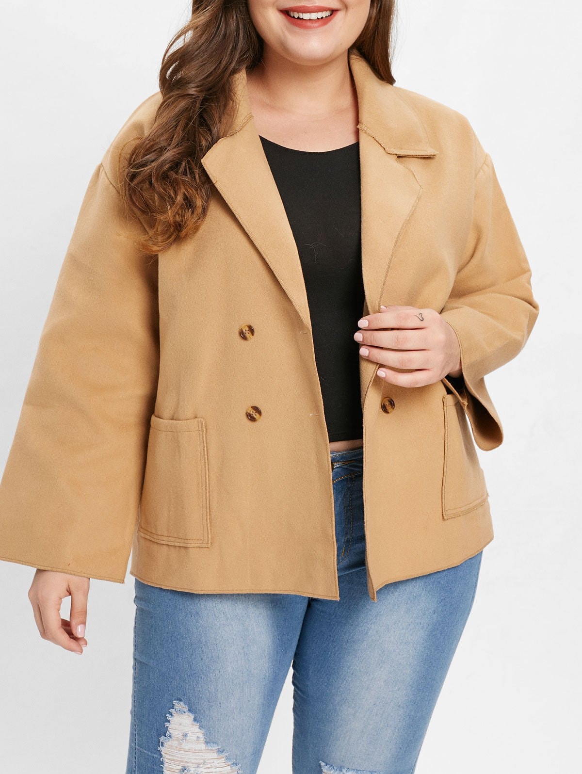 Plus Size Lapel Neck Coat