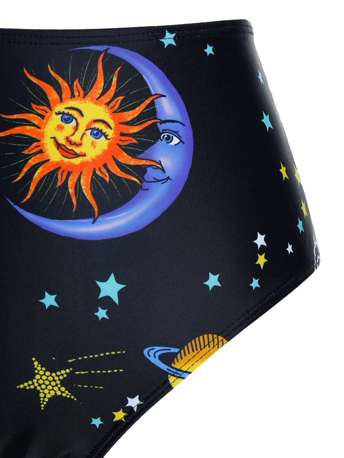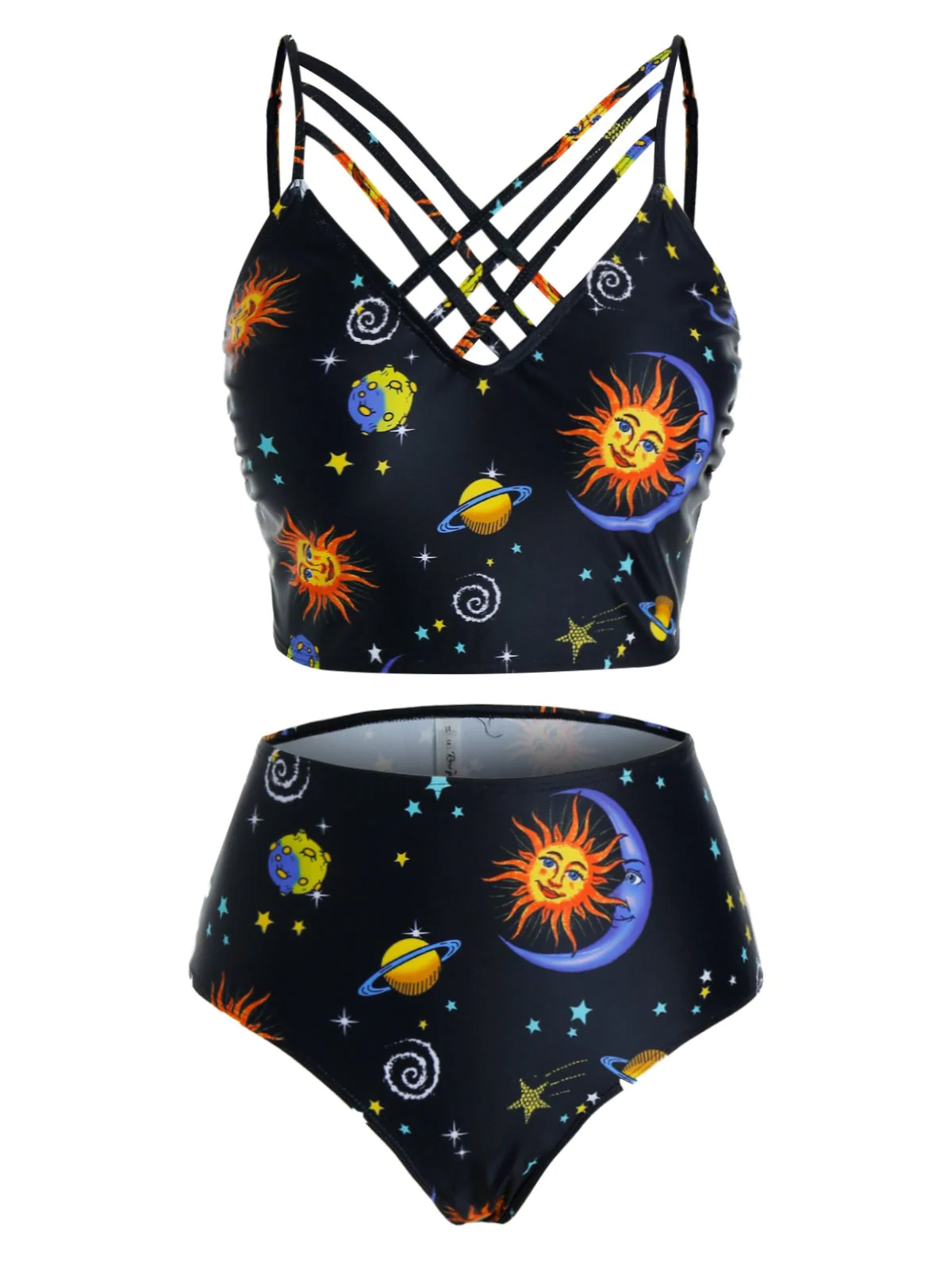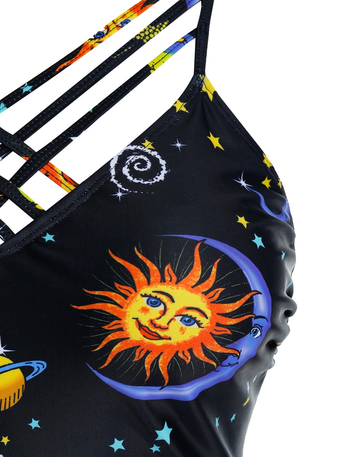 Plus Size Moon and Sun Planet Print Strappy Tankini Swimwear
