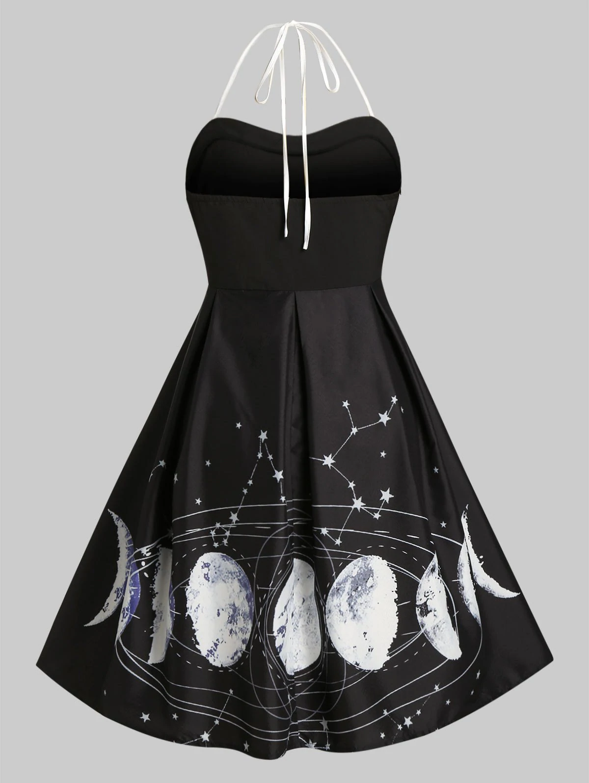 Plus Size Moon Star Halter Button Embellished Vintage Dress